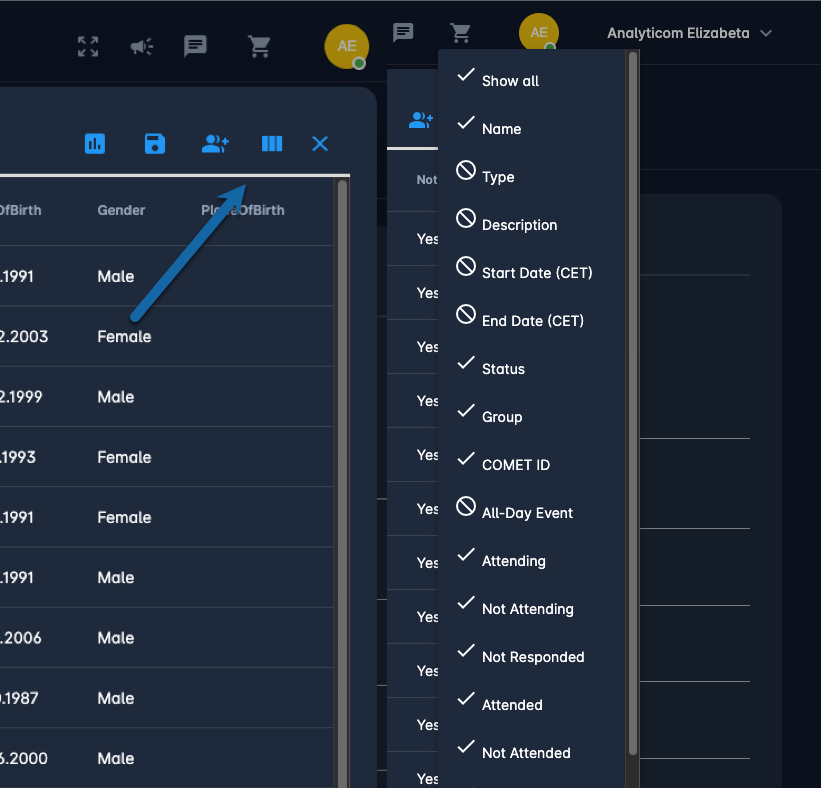 COMET Data reports are designed to provide you with as much relevant data fields (columns) per category. Some of this information may not be useful or necessary for your purpose, so each user is able to customize the presented results by hiding the columns that are not needed at the moment.