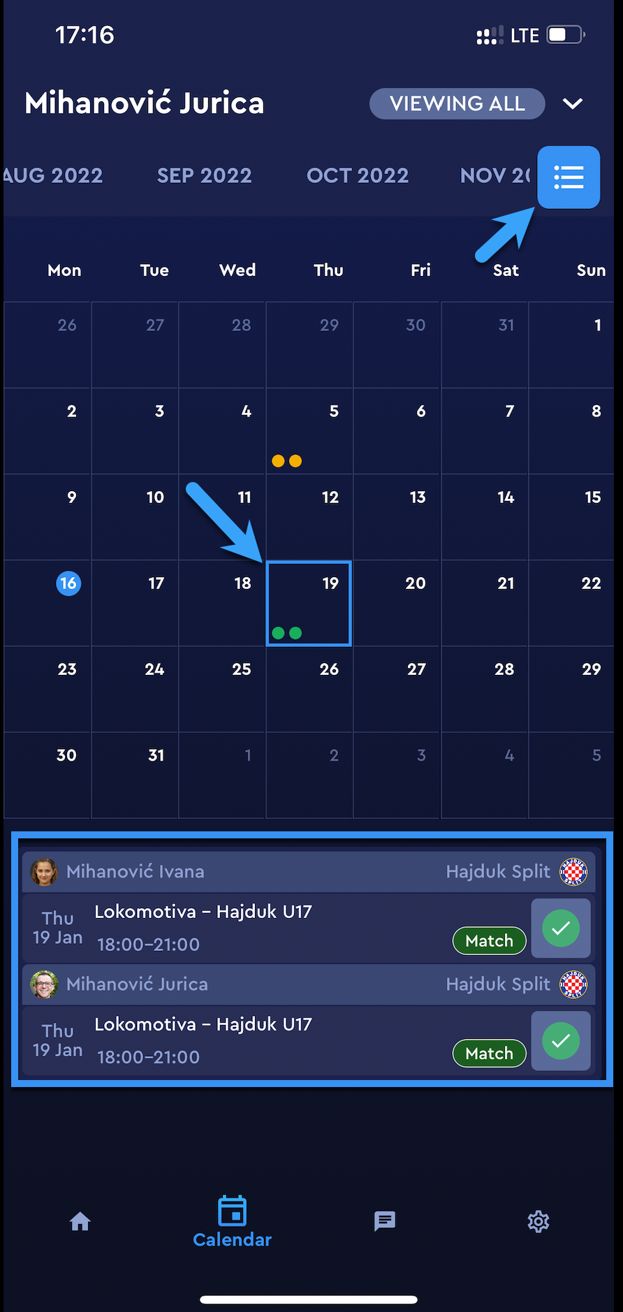 Hit the list-icon button to switch to the listed view of your events.