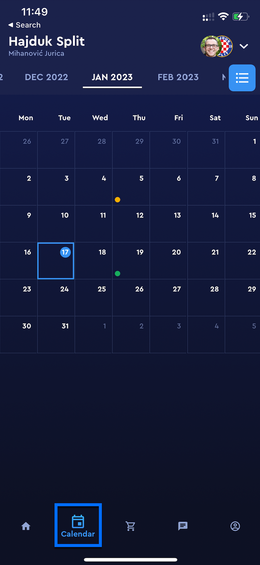 On the bottom command, bar hit the 🗓️ Calendar tab