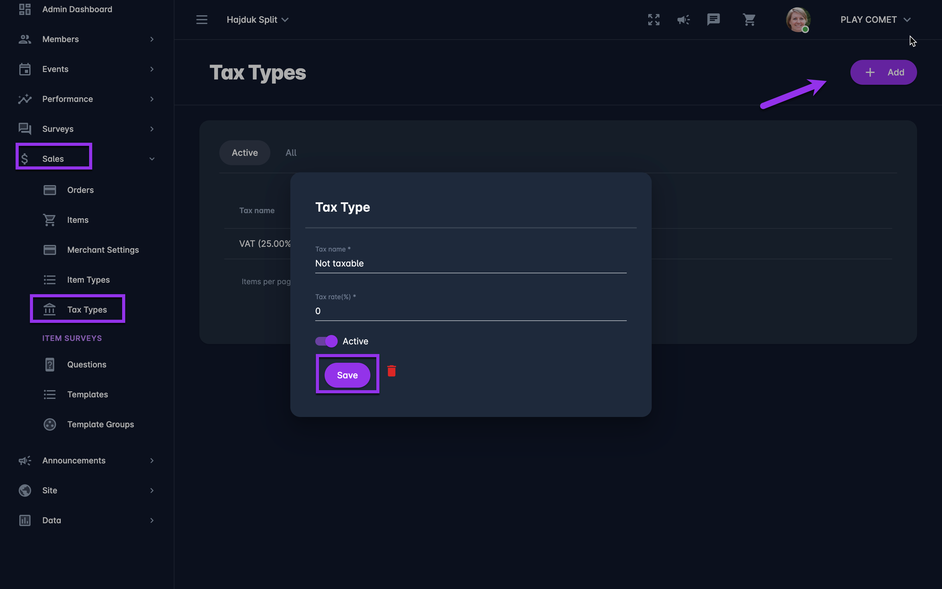 Hit ➕ Add button in the upper right corner to create a new tax type