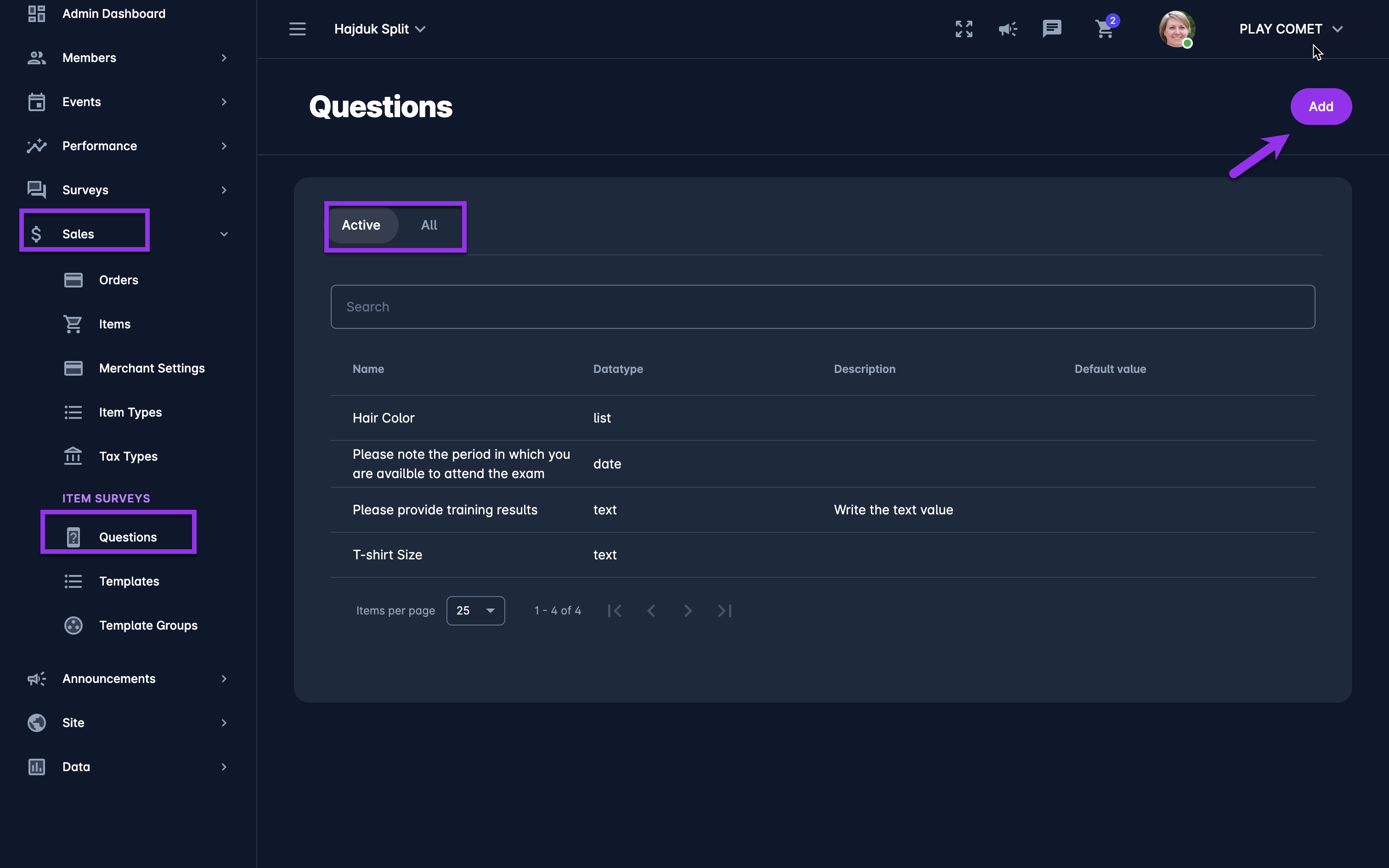Click on the ➕ Add button in the top right corner to create a new Item Question