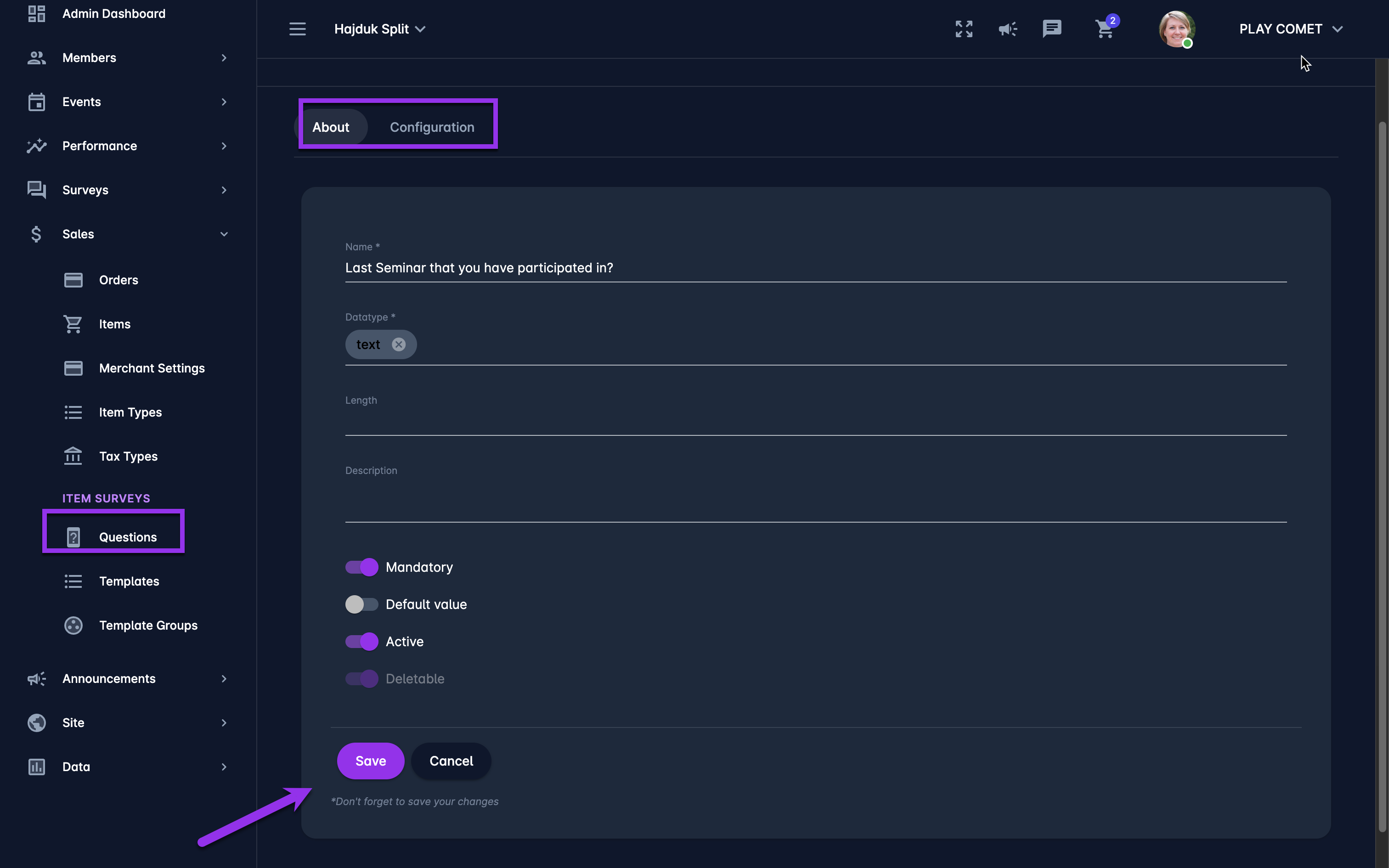 Select ❔ Questions under the t 💲Sales →Item Surveys menu on the left nav-bar