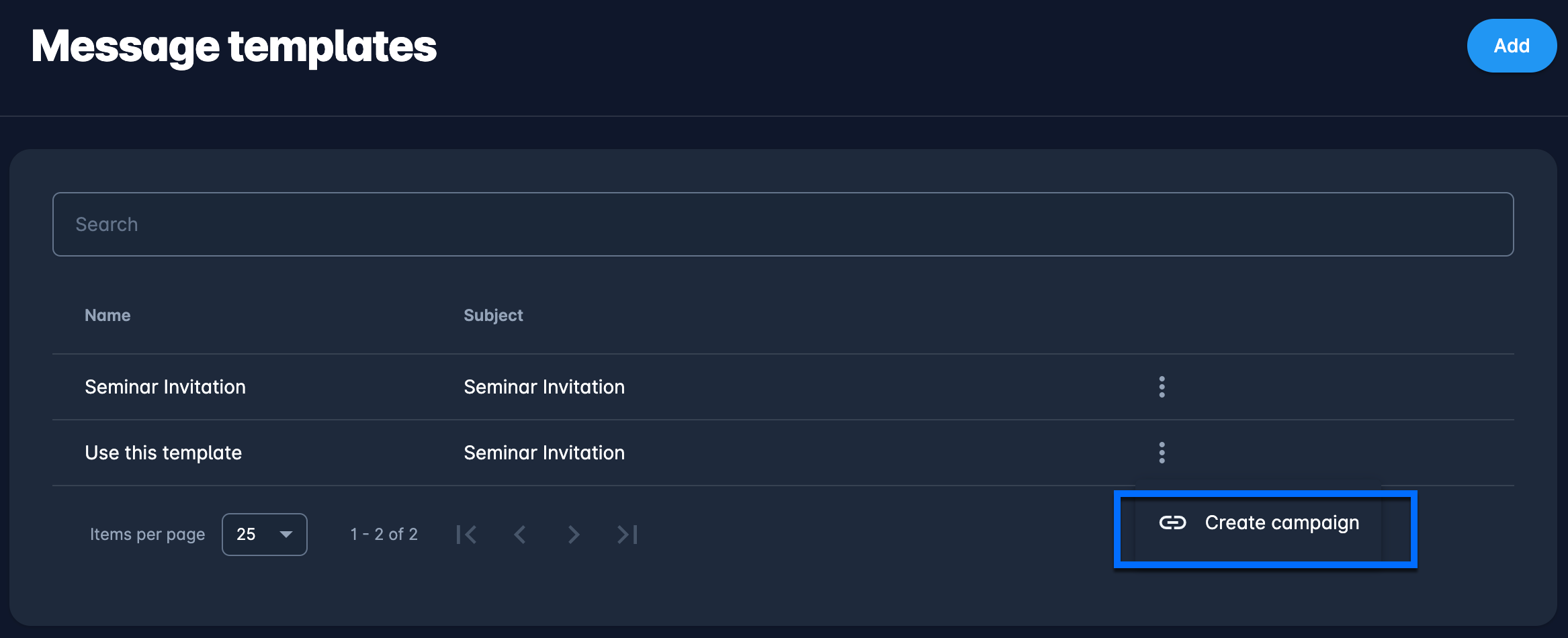 Hit the Add button at the top right corner to create a new Message Template
