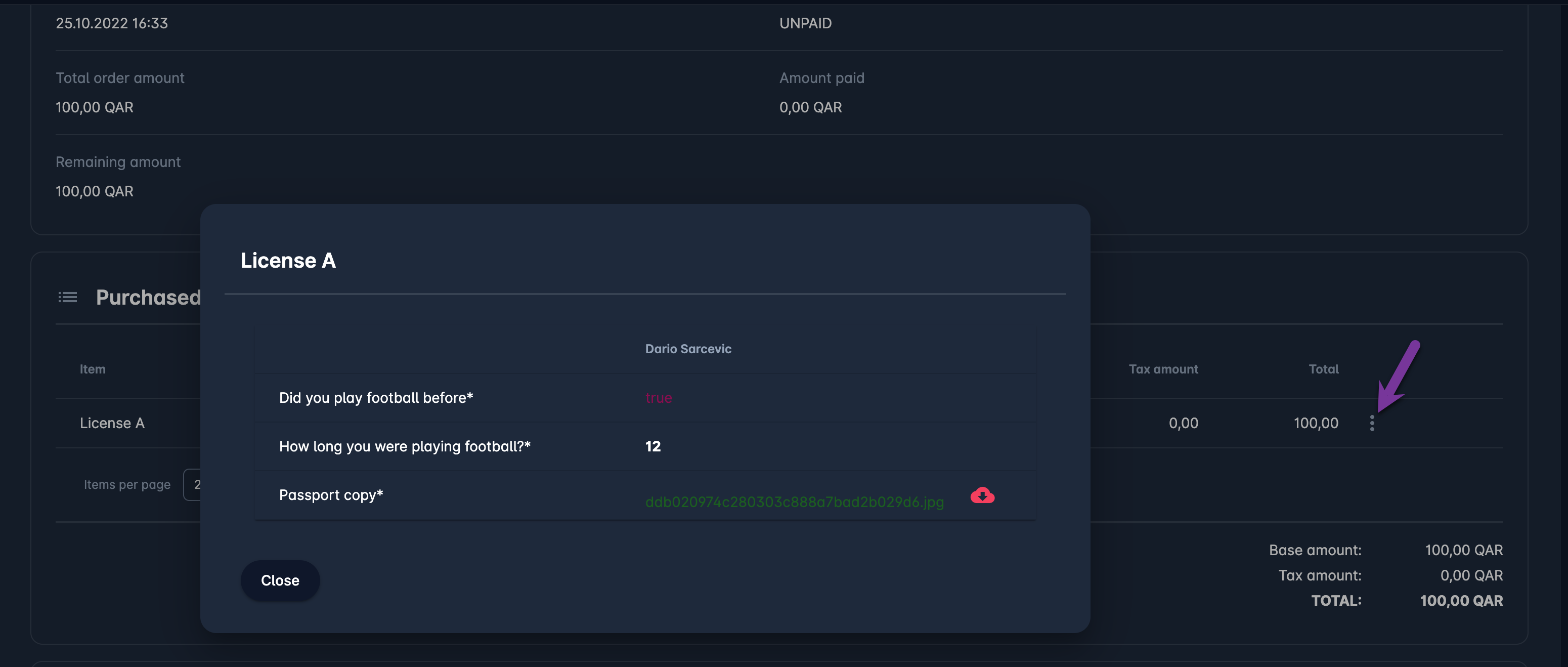 Workspace Administrators are able to define Item Surveys, i.e. the form /set of questions that need to be submitted by the Member prior to purchasing an item.