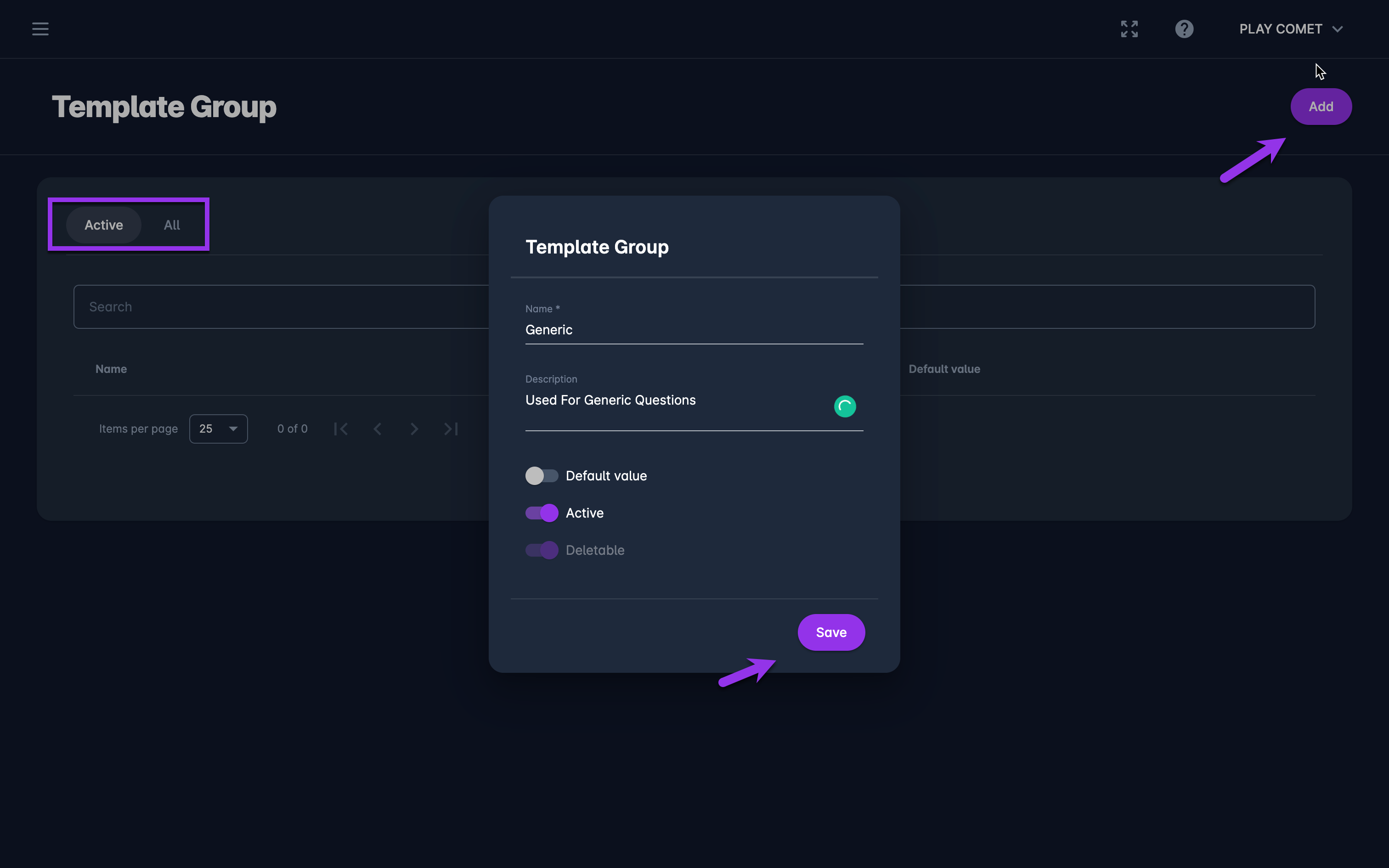 Deletable - the groups that are set as non-deletable cannot be deleted by COMET Play users