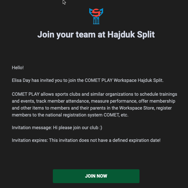 As a COMET PLAY User, you might be invited to join a particular Workspace. This invitation is created by the workspace admin, and delivered to you via e-mail.
