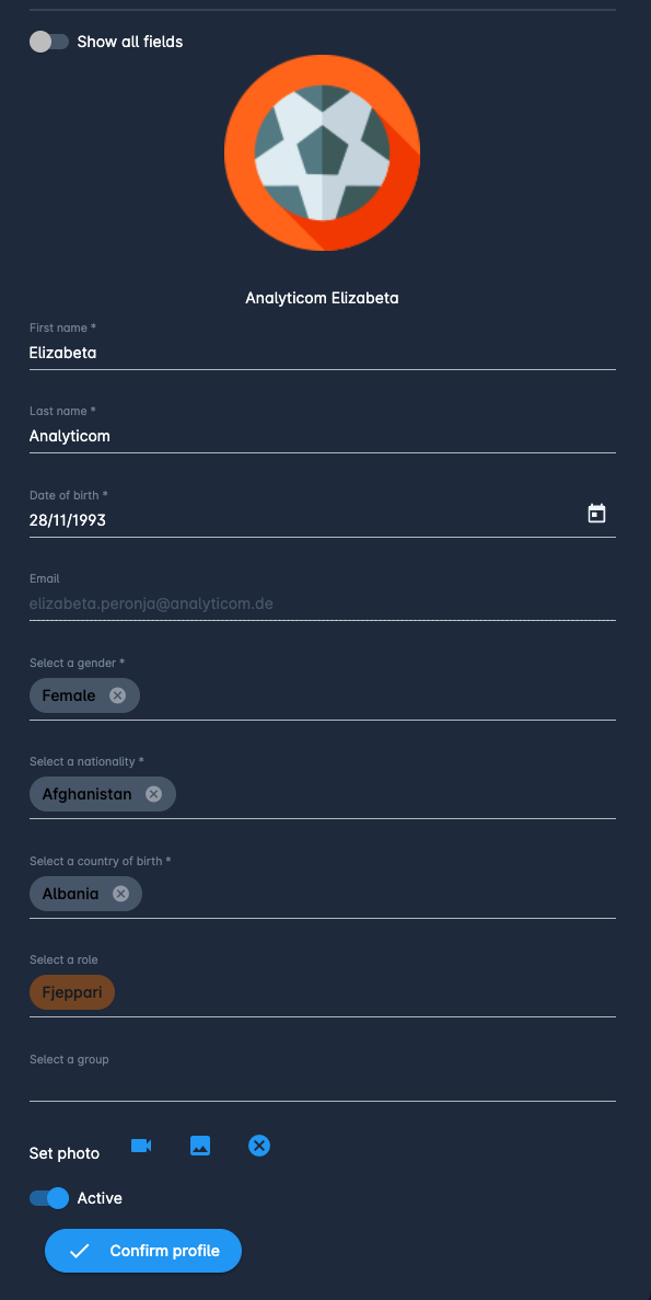 Once you have entered all the obligatory data hit the ✔️ Confirm Profile button
