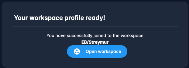 After confirming your profile you will be notified and e-mailed that you have successfully joined the workspace and you will be able to open the Workspace as a regular member.