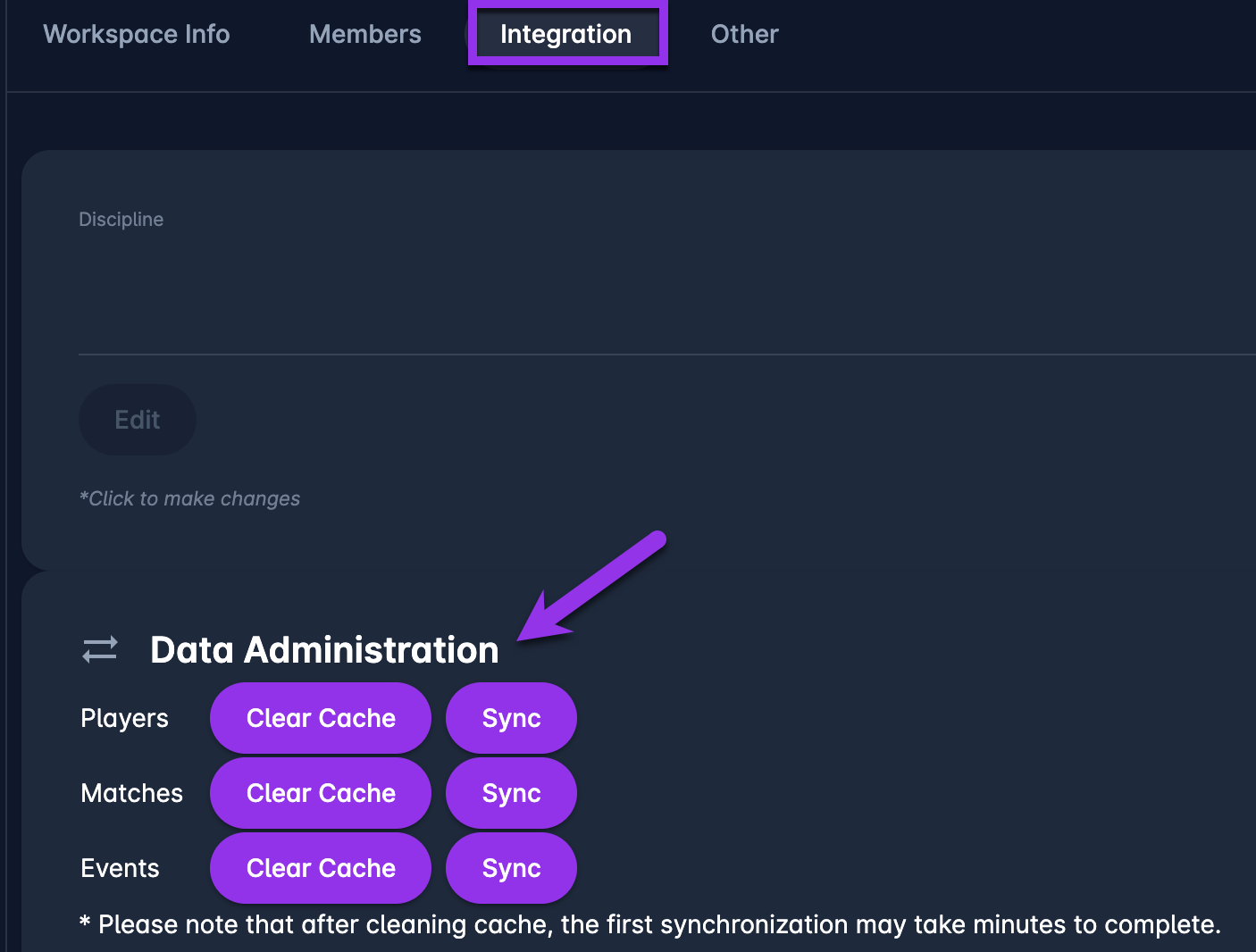 Select the Integration tab on the Workspace Settings