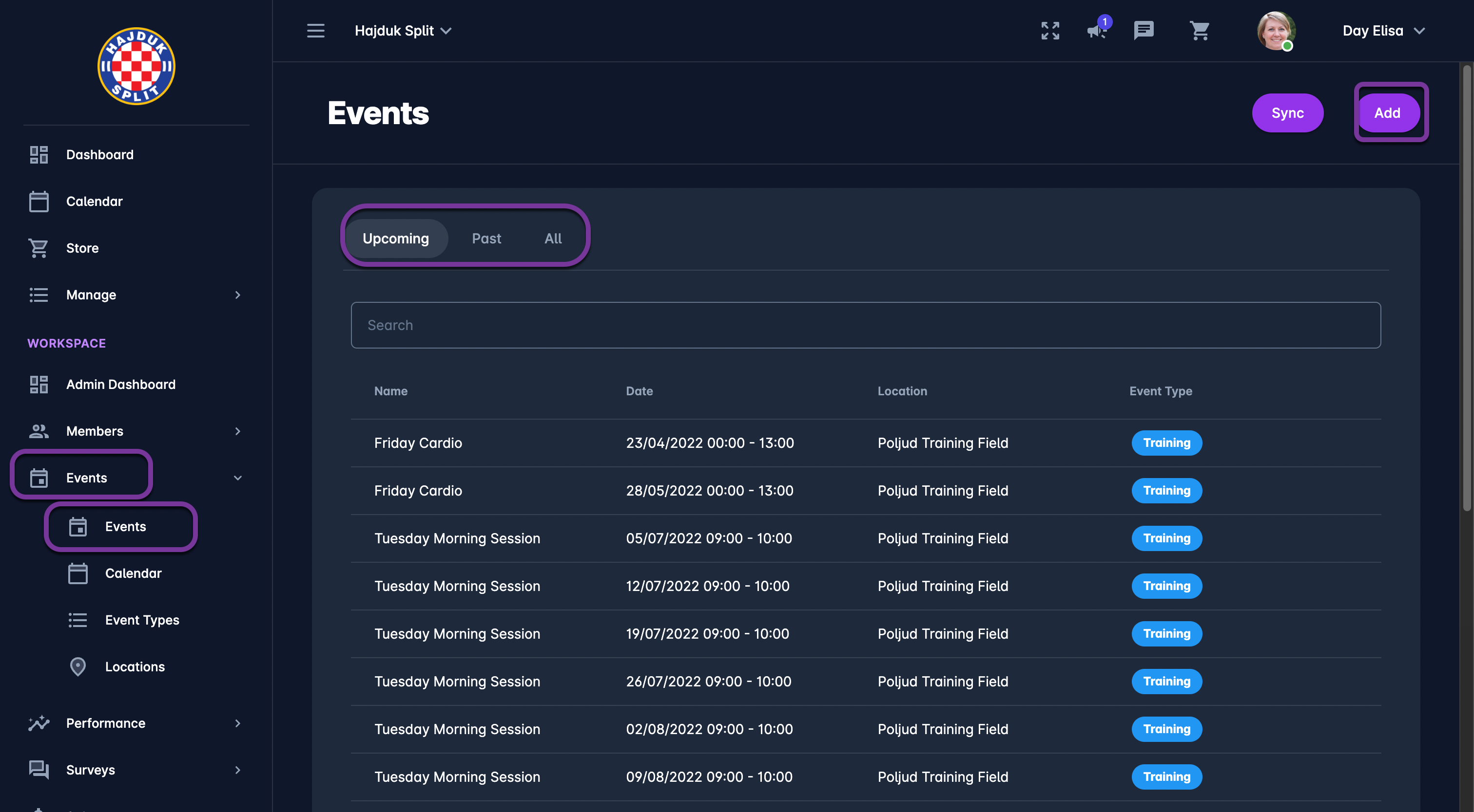As an admin or coach, you can create events of various types (such as recurring trainings), and invite members or groups of members. This article will help you understand how to create a new Event, and update an existing one.