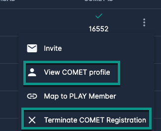 Hit the Three dots icon button and select the option Terminate COMET Registration → In this way the COMET registration of the player will be terminated directly from COMET PLAY, or
