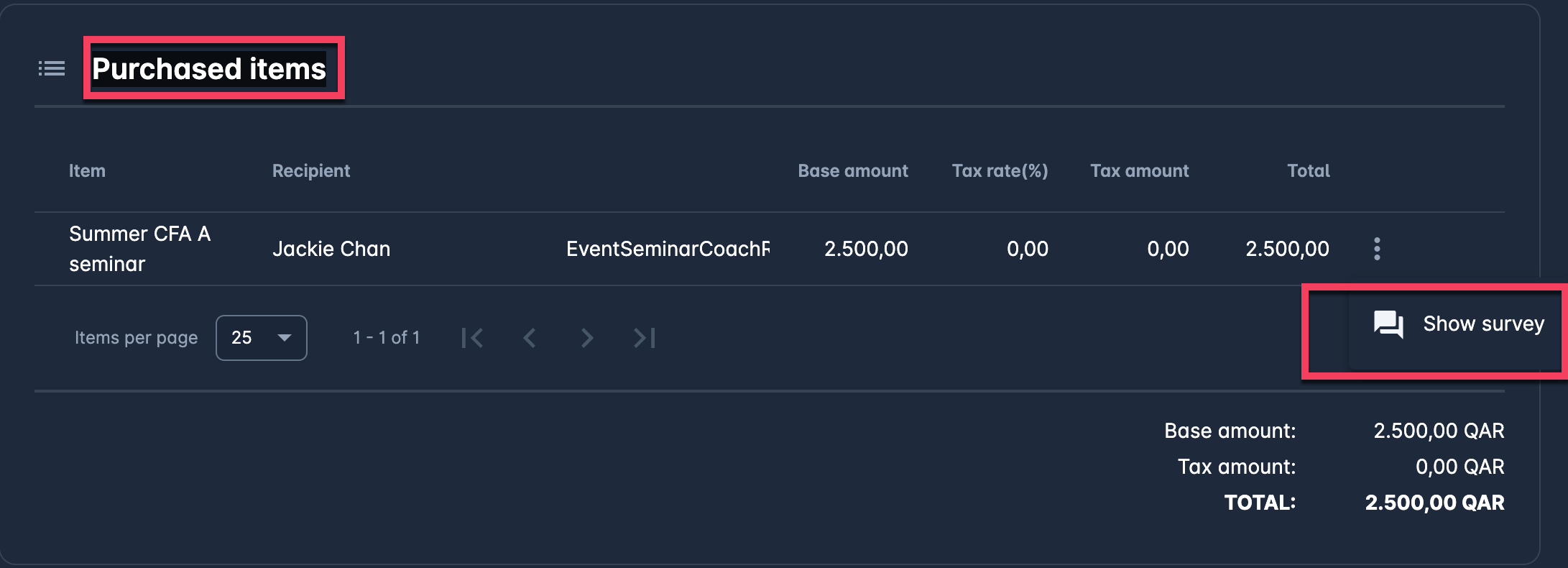 Please take into account that from the Purchased item panel on the Order details page, you are able the check the Survey of the item (if the survey is configured for an item)