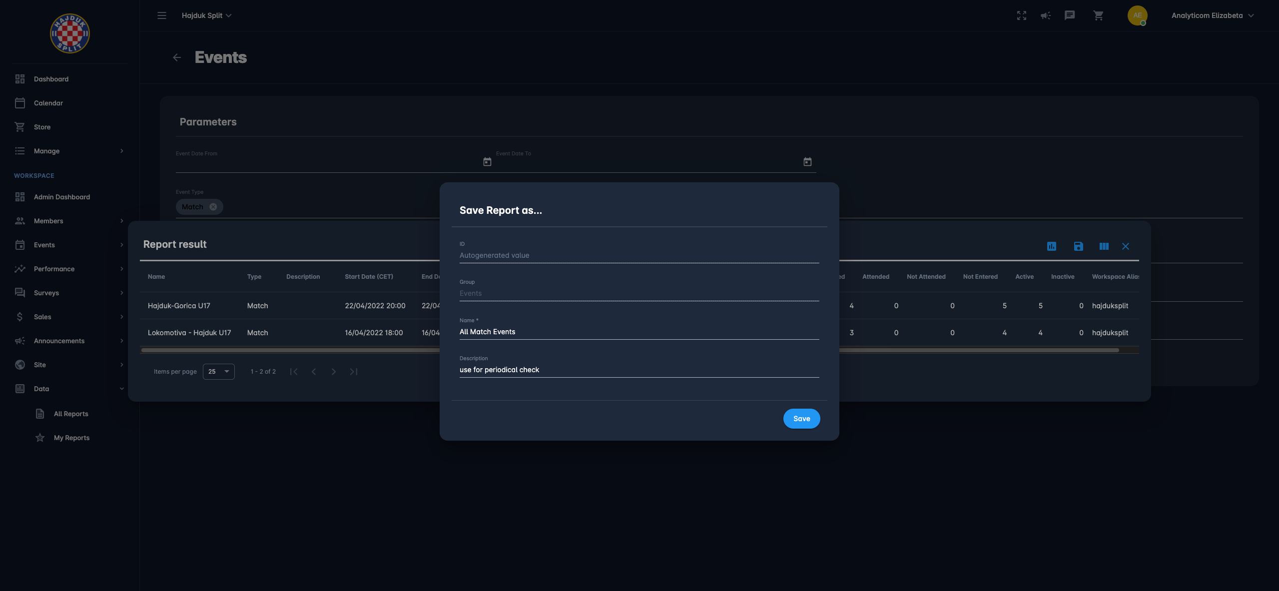 This action saves the query with all the details you have selected under the My Reports menu on the left nav-bar section so you can reproduce the report with new data at any time.