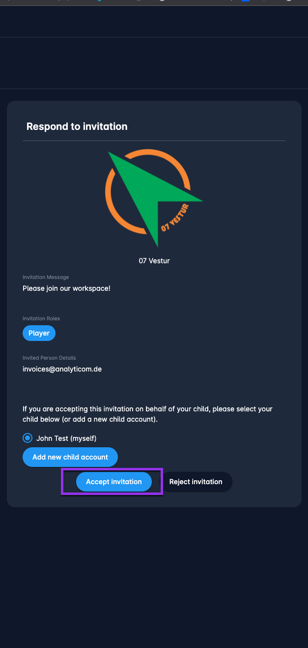 The new member of your Workspace will get the invitation with the prefilled Member form and she/he will be asked to confirm the profile details.
