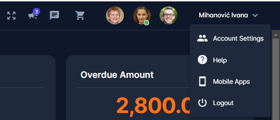Click your name button in the upper right corner of the COMET PLAY Toolbar, in order to open the User Menu