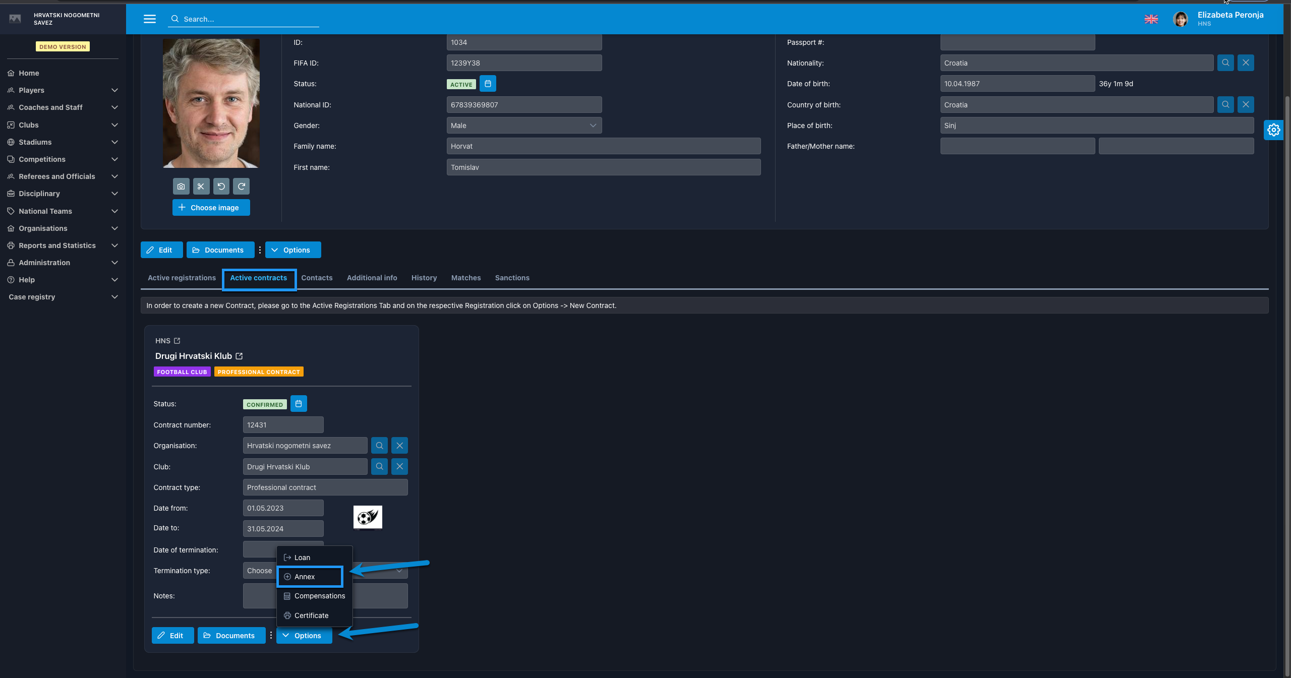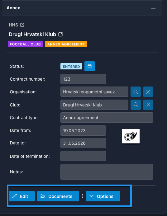 To Add the Annex to the existing contract, the player must have an active contract with the club where he is registered.