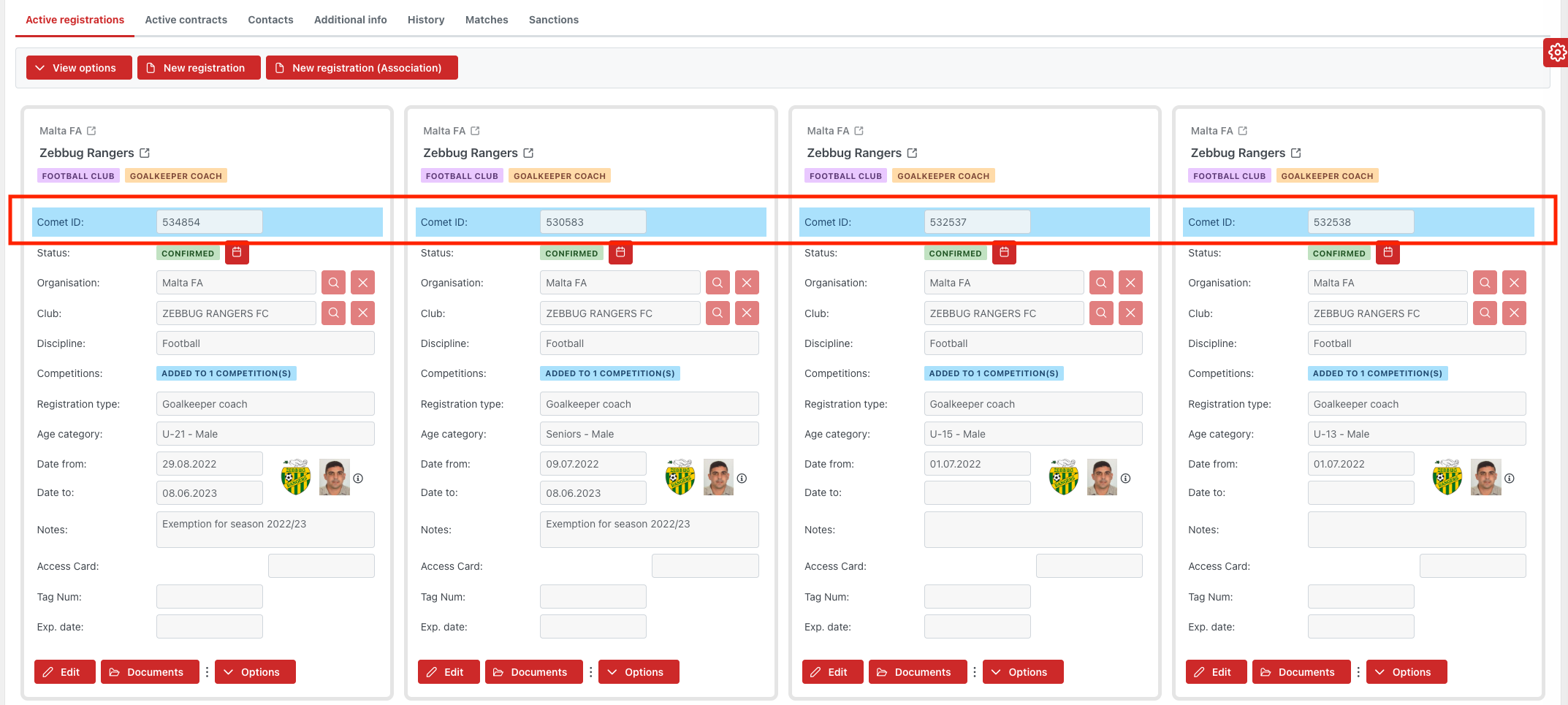 Active Registrations Tab: COMET ID of the registration will be shown in Admin Mode