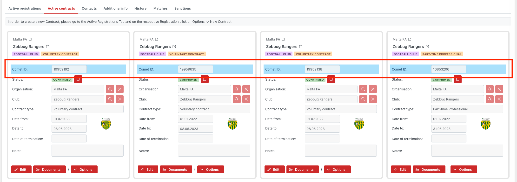 Active Contracts Tab: COMET ID of the contract will be shown in Admin Mode