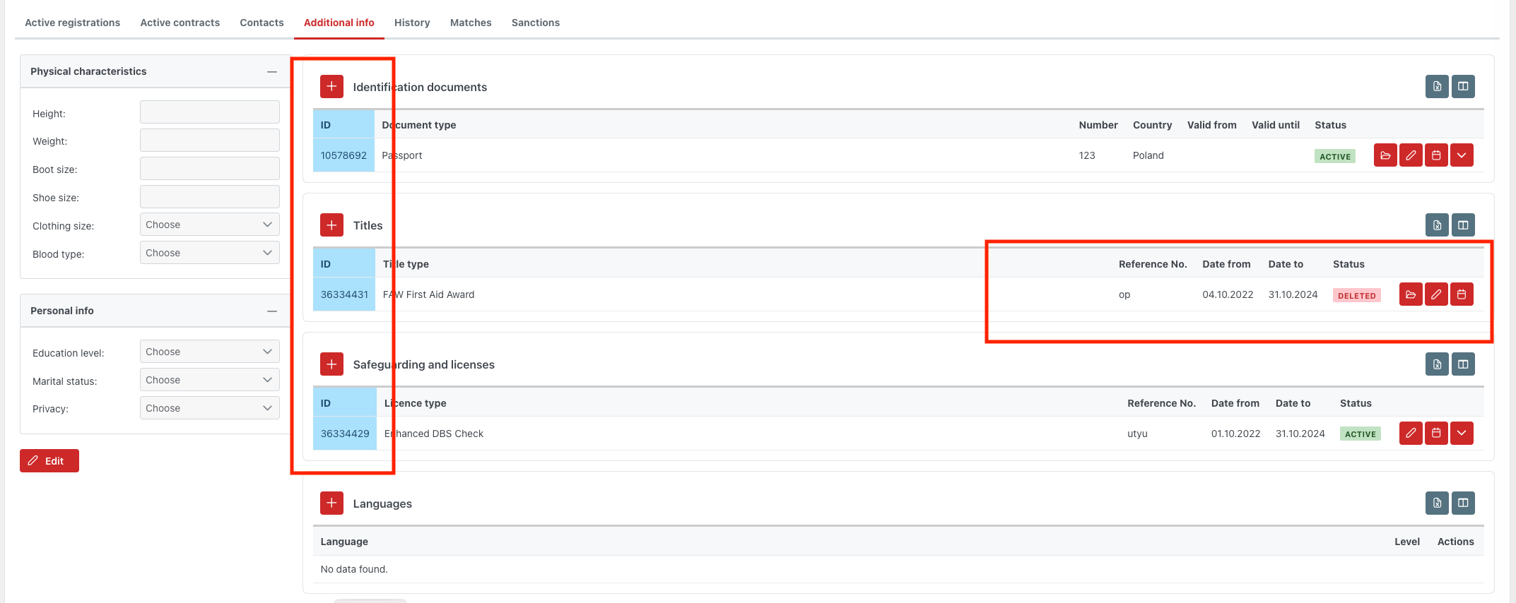 Additional info Tab: COMET ID of the entities (such as ID Documents, Titles and Licenses) and DELETED entities will be shown in Admin Mode.