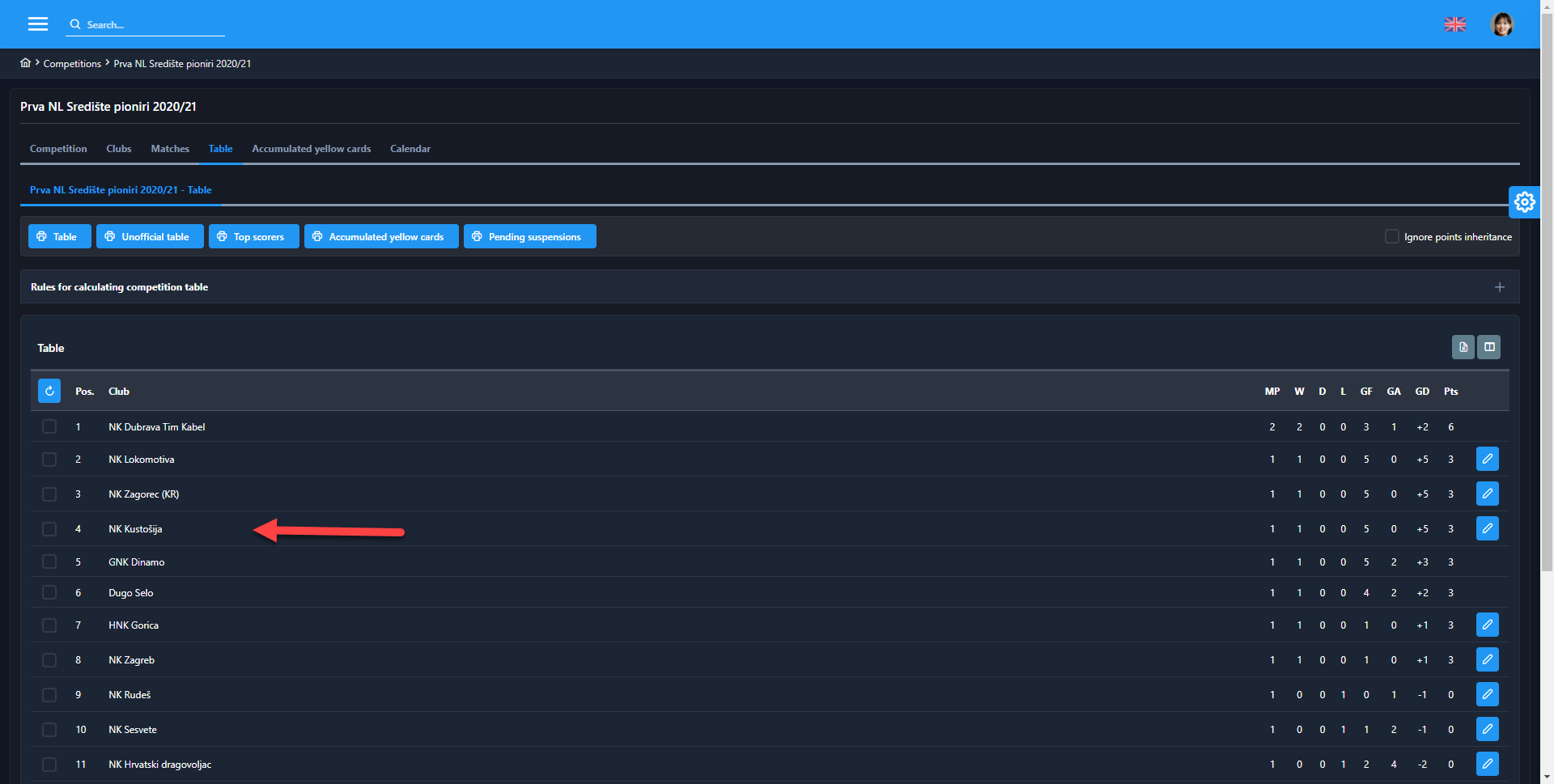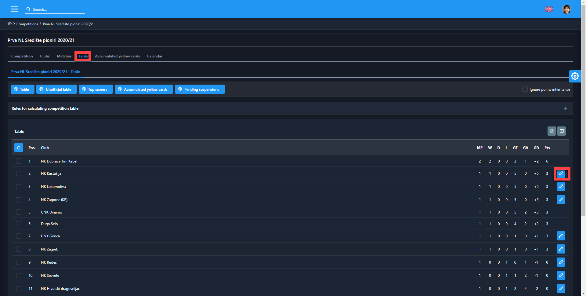 Click the Table tab and then the ✏ Edit button on the right of the respective club