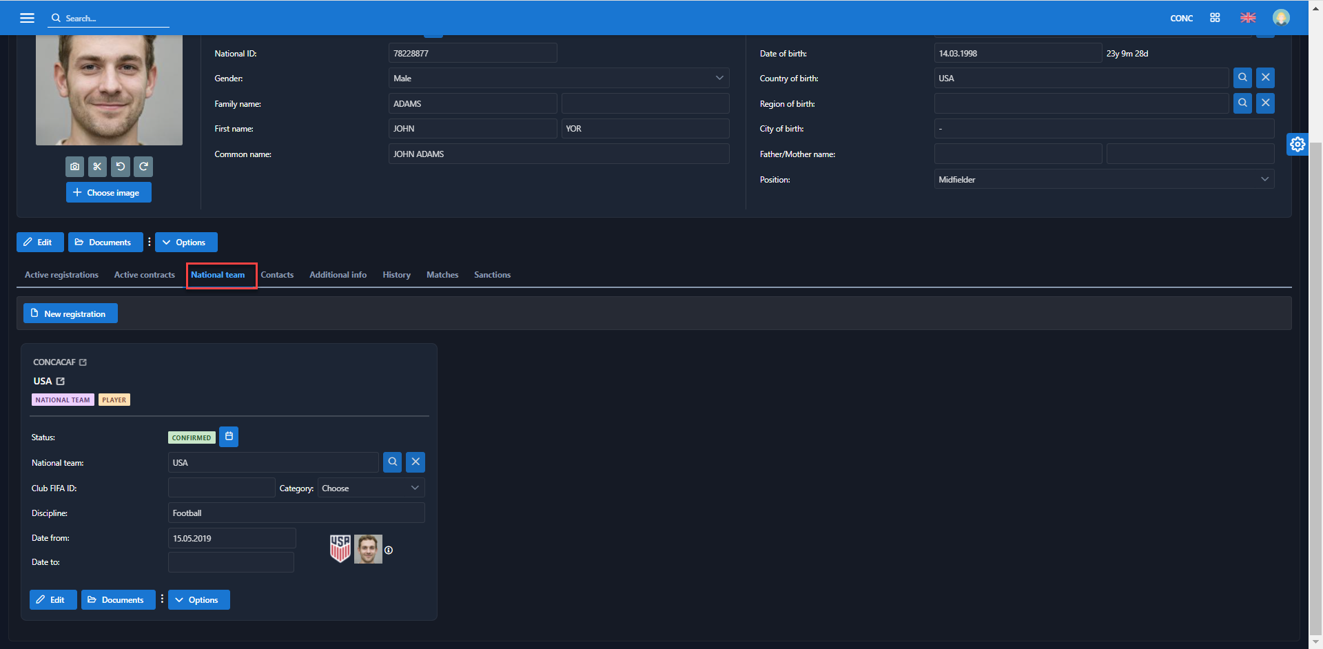 ▶ This feature is useful for the user whose national team is selected for national team registration as for players the registration is determined by a person's nationality.