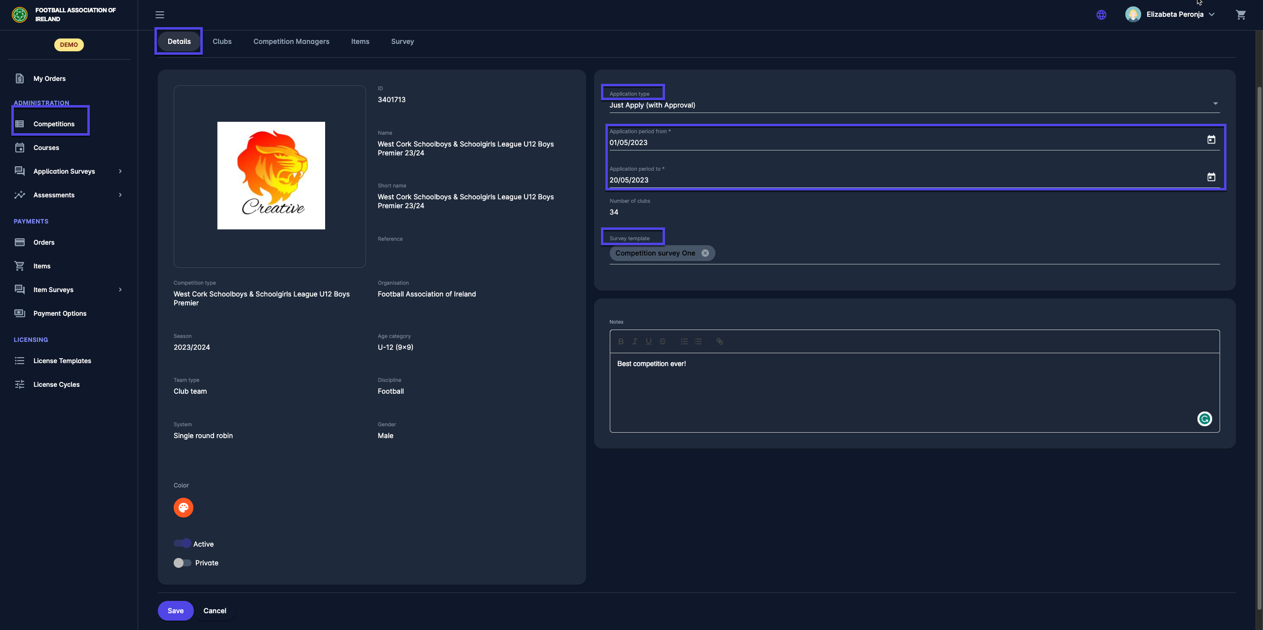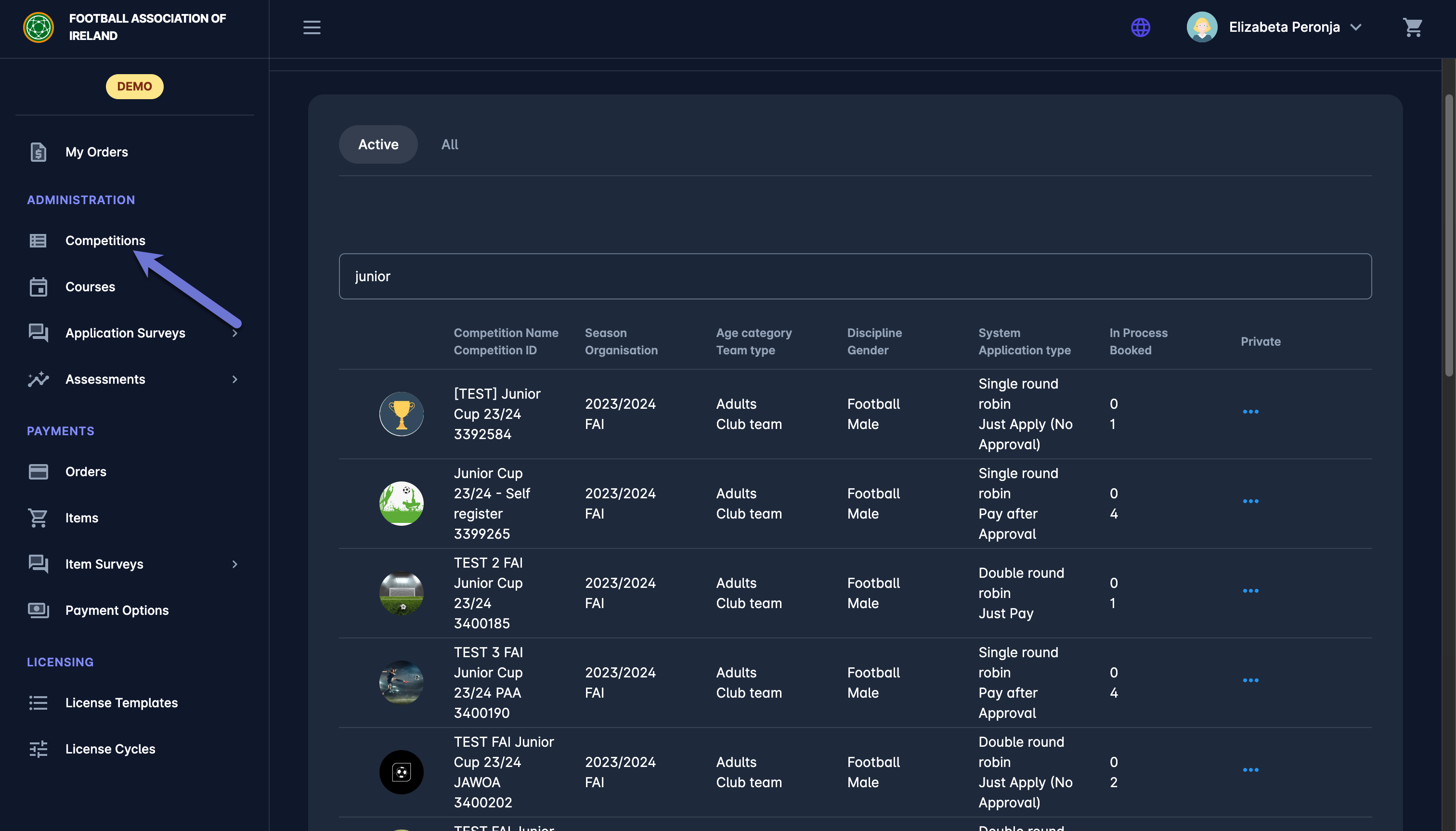 Select 📑 Competitions under the ADMINISTRATION menu on the left nav-bar