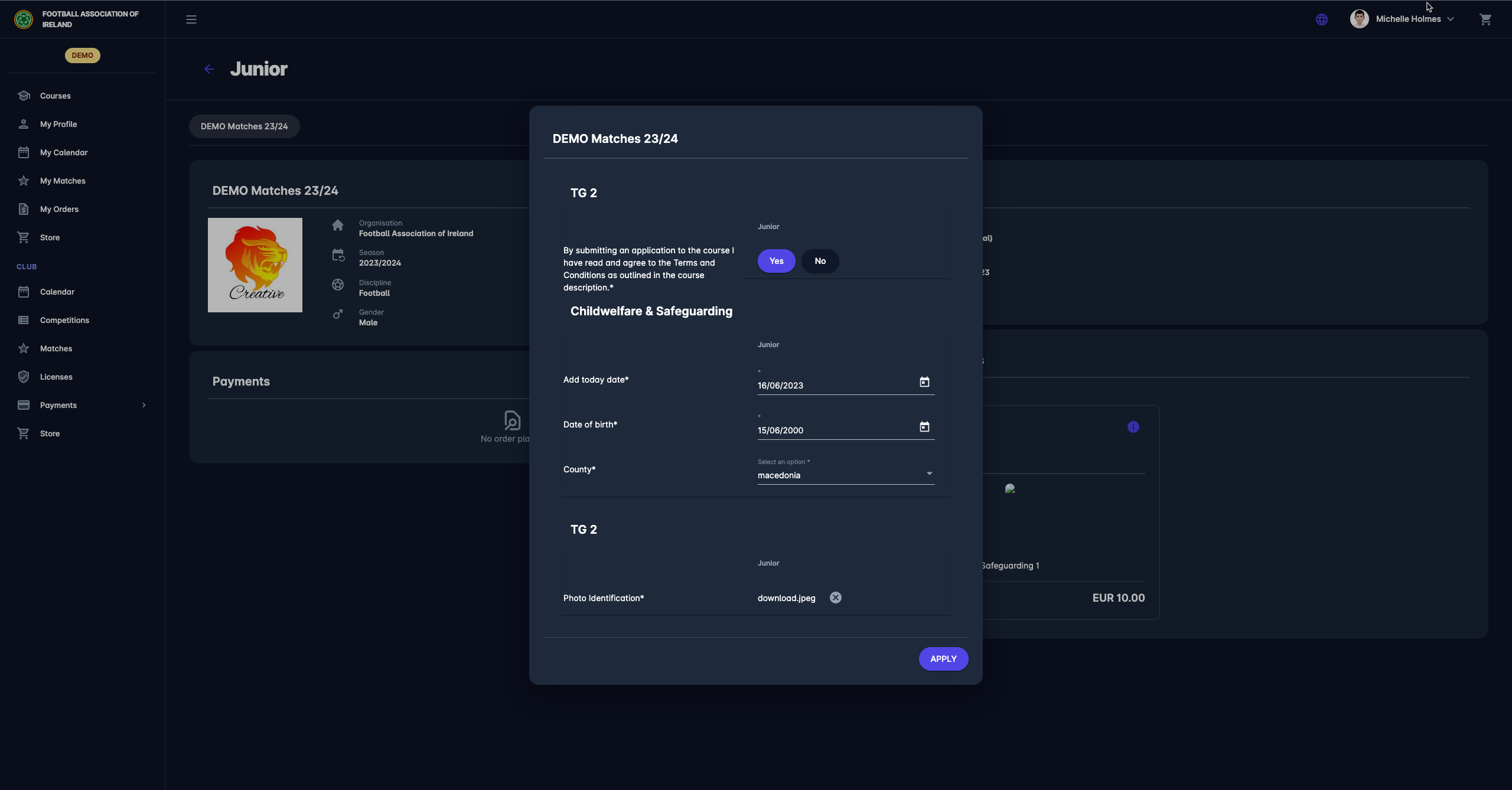 Competition Administrators are able to define Application Surveys, i.e. the form /set of questions that need to be submitted by clubs. The role of the responsible person is to review the application survey and confirm the club’s status on the competition.