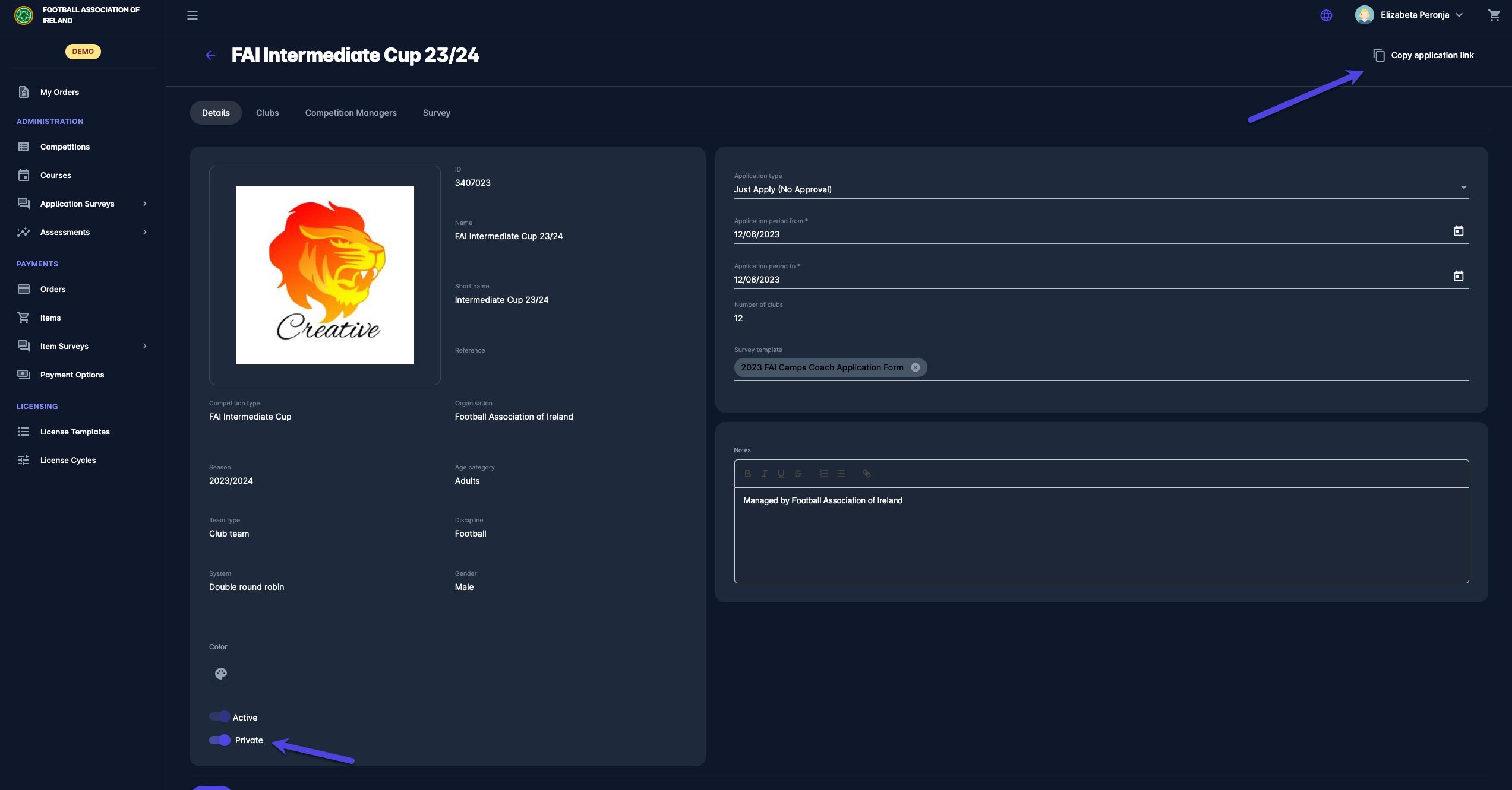 For the purpose of hiding Competition from public users, there is a “Privacy” switch on Competition profiles. Competition Admins will use this option when they want to prevent “outside” clubs to apply for the competition. This feature might be used for specific organizational needs of the event, e.g. for competitions that are organized for a closed group of invited clubs and should not be publicly accessible.