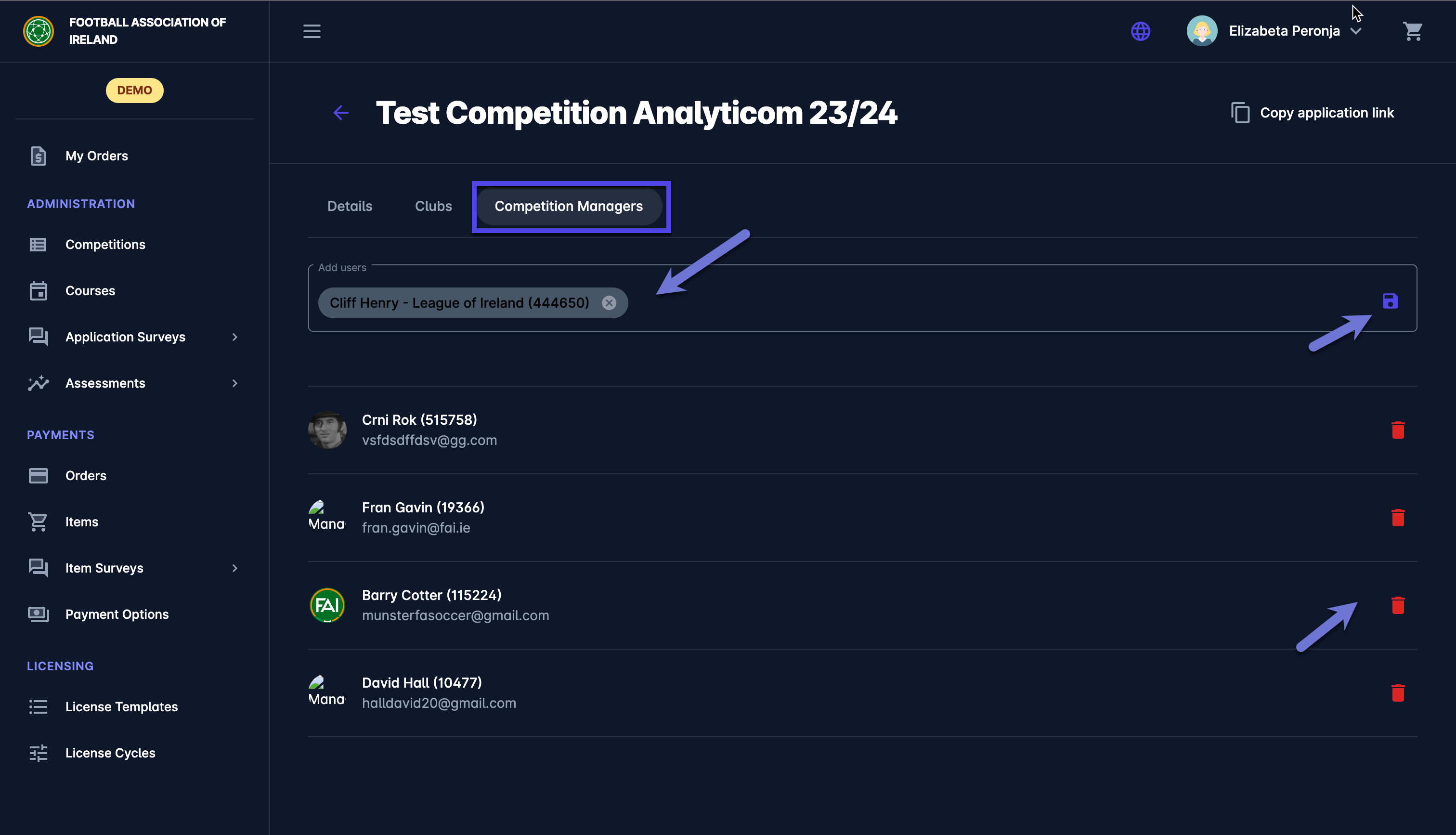 Take into account that Competition Managers can be assigned to the competition from the Competition Profile in COMET UI and they can be also managed and added from this module.