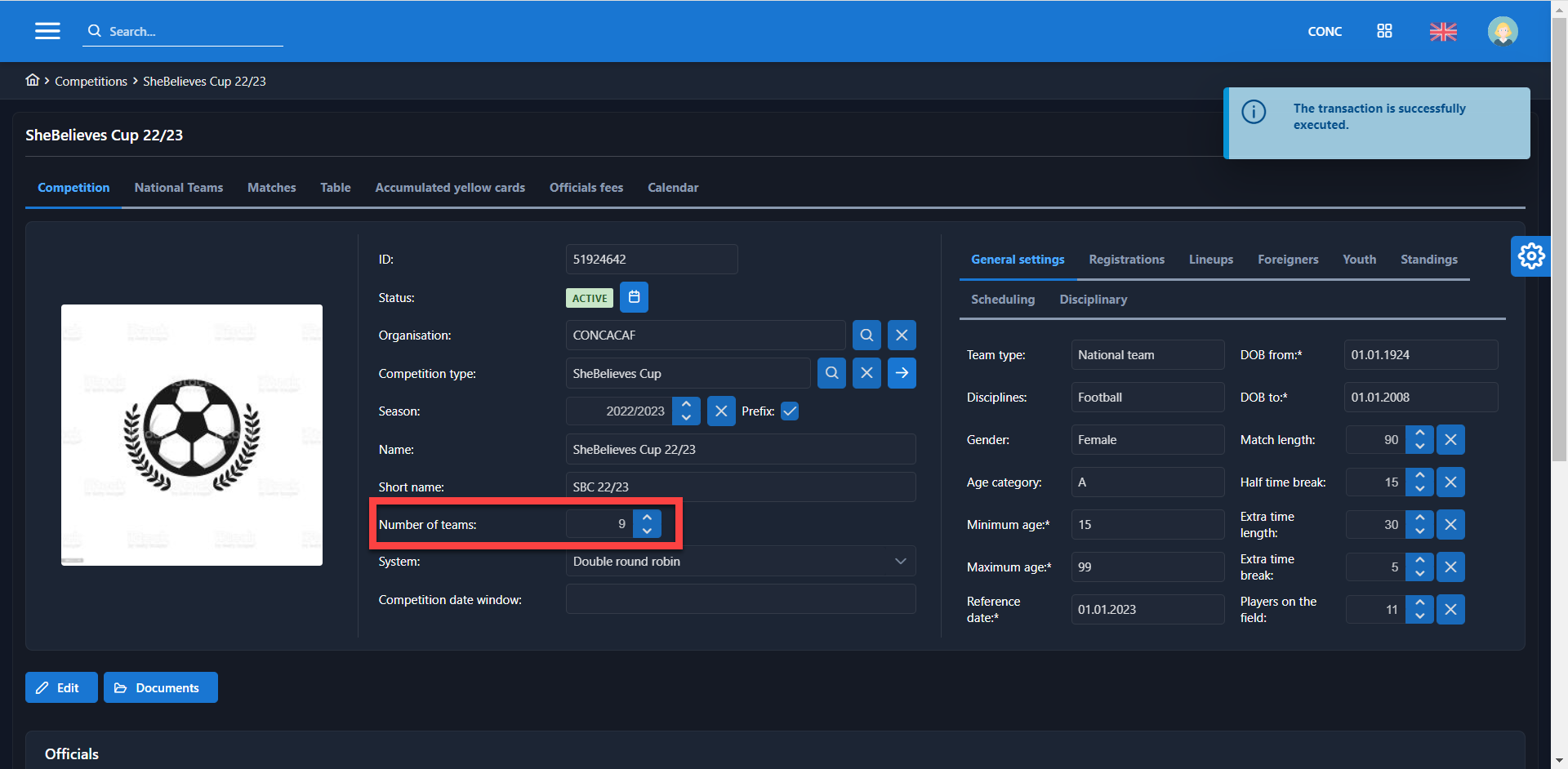 Once you have created a competition, click the "Clubs" tab and select the clubs for the competition. After that, the * symbol will appear on the list and you will be able to reorganize clubs in case you have to.