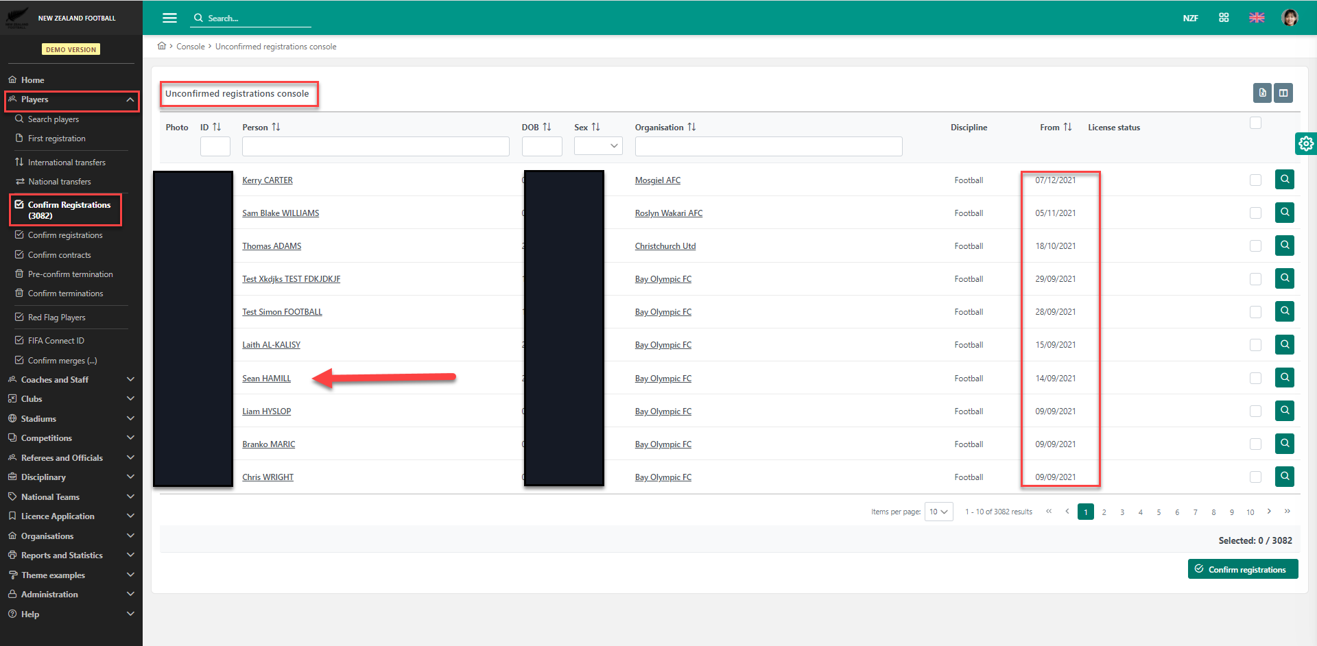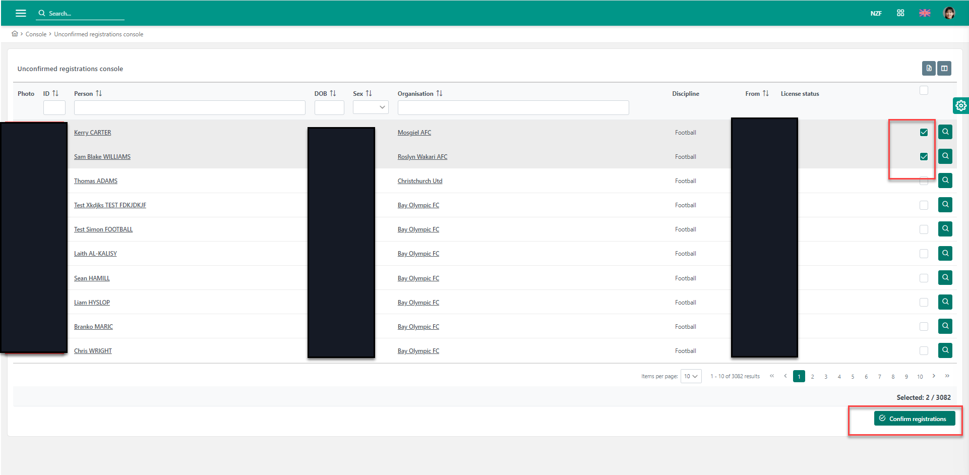 Please note that some tenants on the Confirm registration tab can select multiple registrations at a time and confirm them in a single action by hitting the