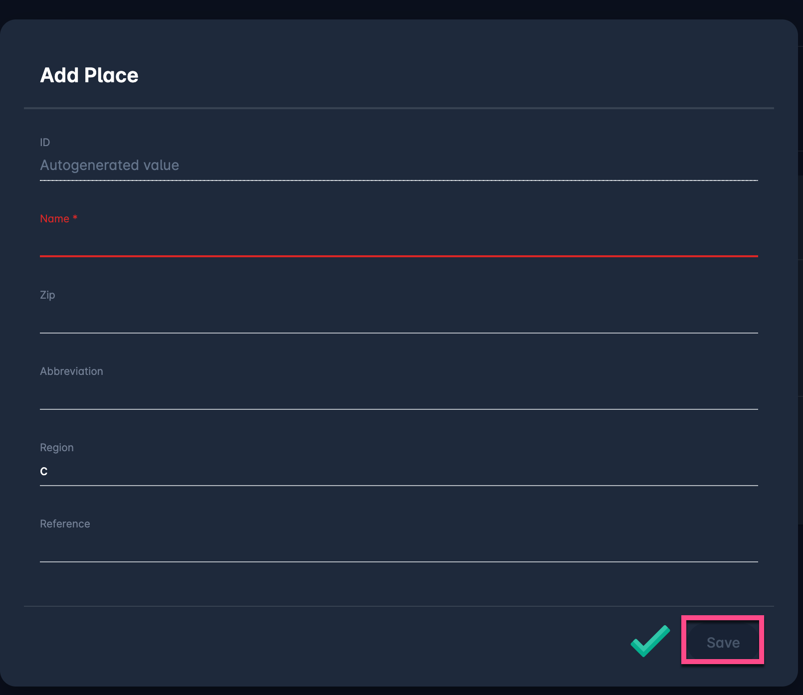 After successfully creating a new country, you can access the Places tab. Places can be managed for the existing countries as well.