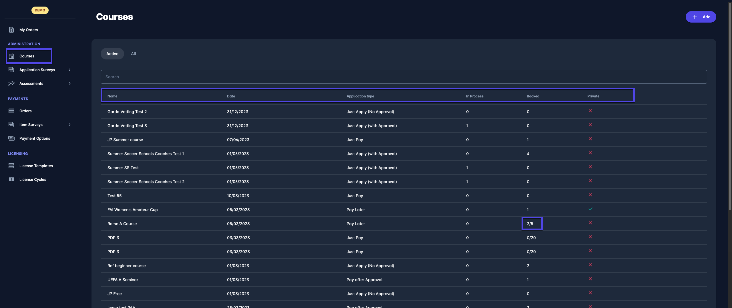 Please consider that on the event list, you can see the number of participants whose application to the event is confirmed, i.e., they have booked their place. The “Booked” column displays the number of participants who have confirmed their place on the event; according to the application type of the event, their status implies that they have been accepted on the event, i.e., they are counted in the Max participant fields (their status is Approved, Confirmed, Pass, Fail).