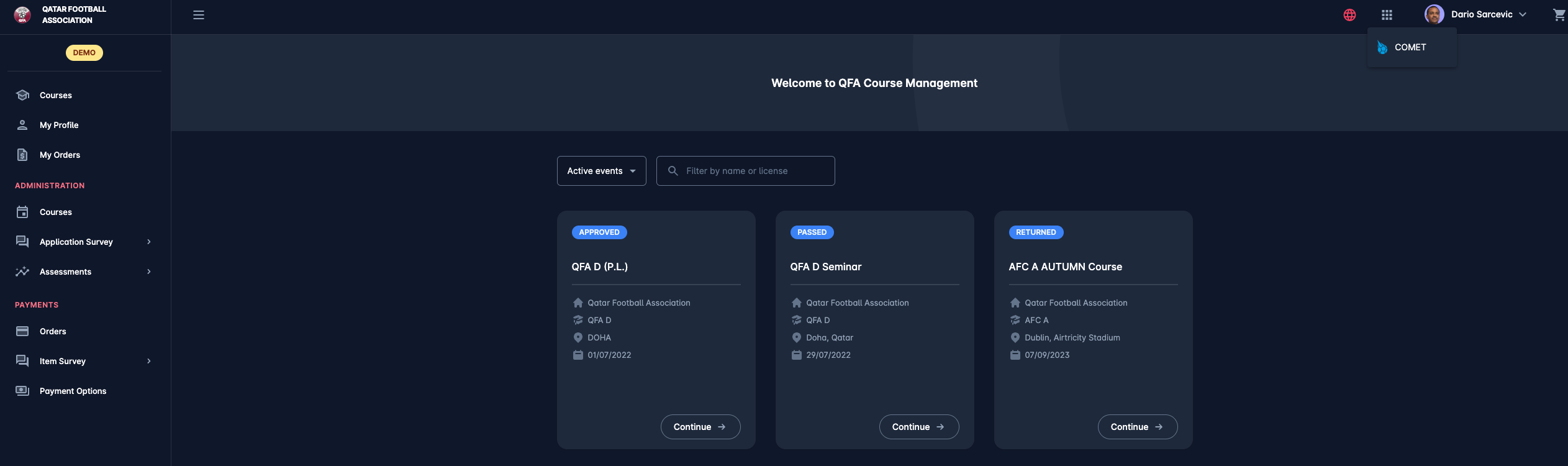 COMET Event Management extension is an integrated software solution that combines key processes and data related to the organization of coaching courses and licenses.