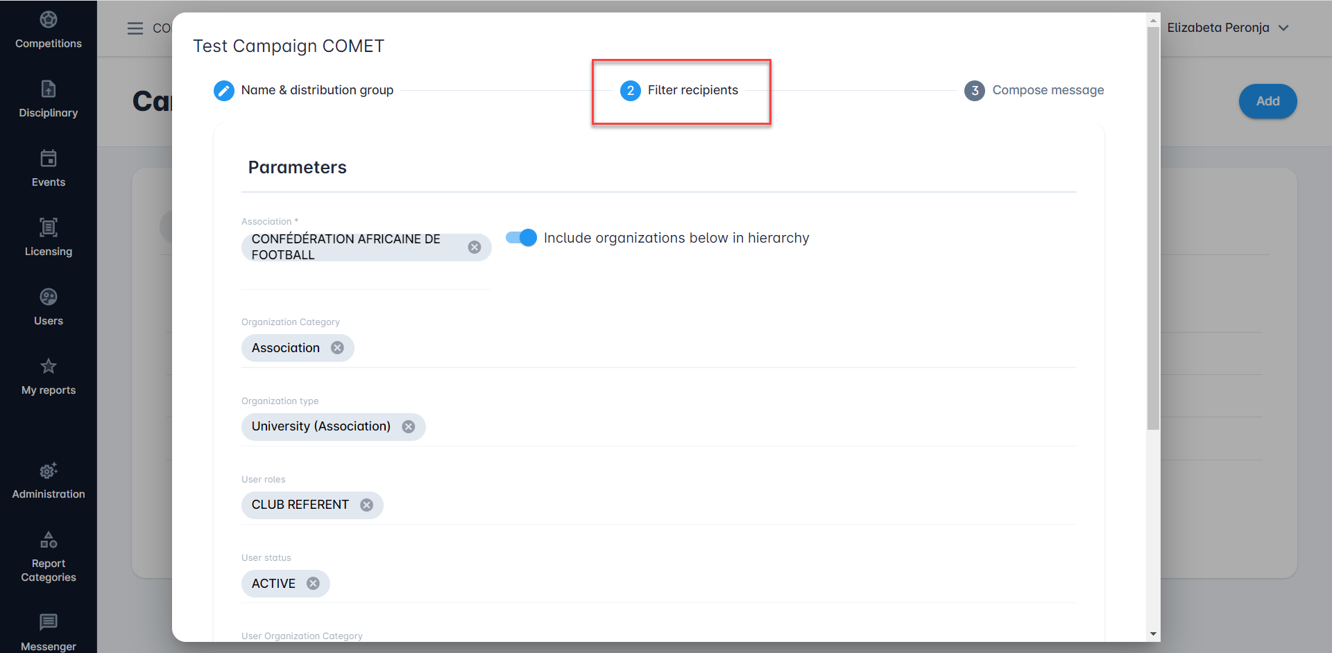 Depending on the report you have selected for your distribution group, in this step, you will be able to select parameters for additional filtering of your distribution group (in the image below you can check an example of parameter adjustment)