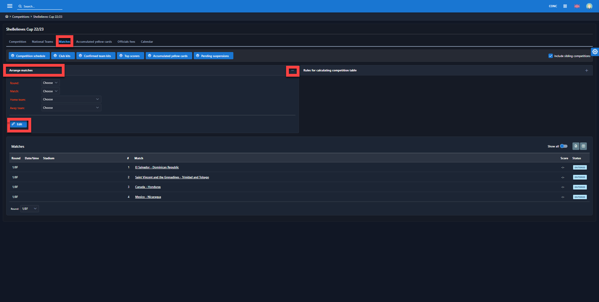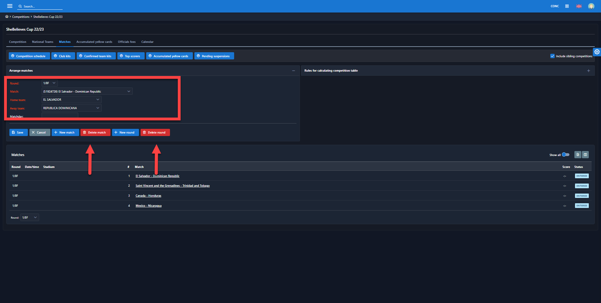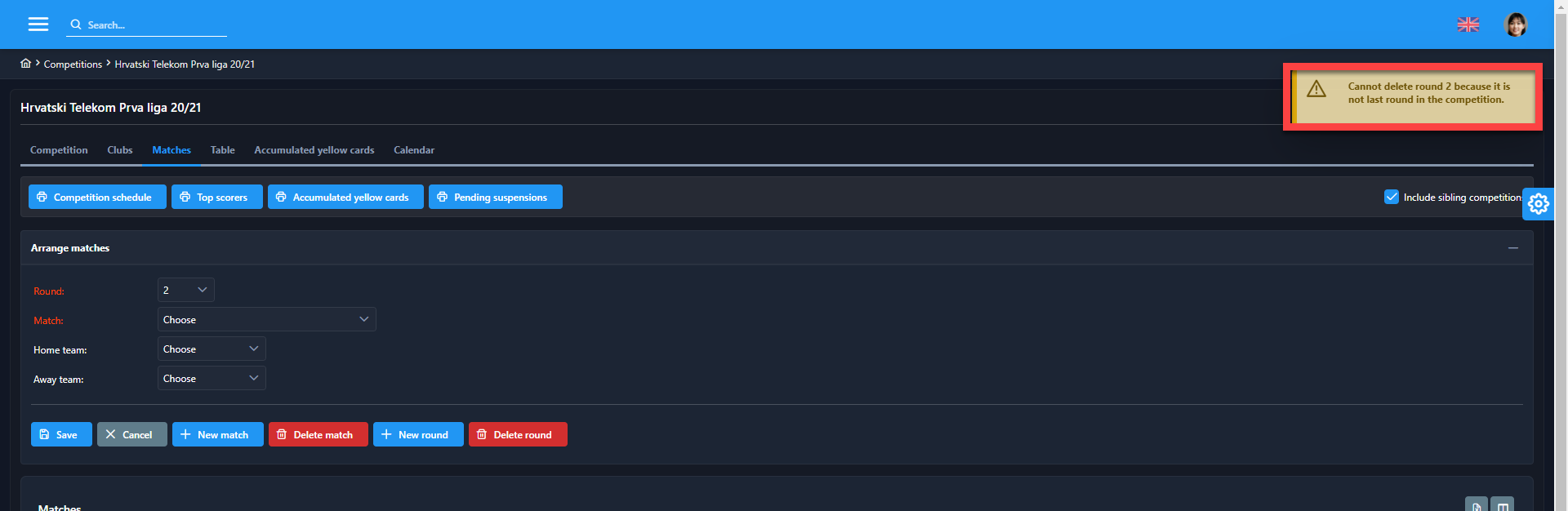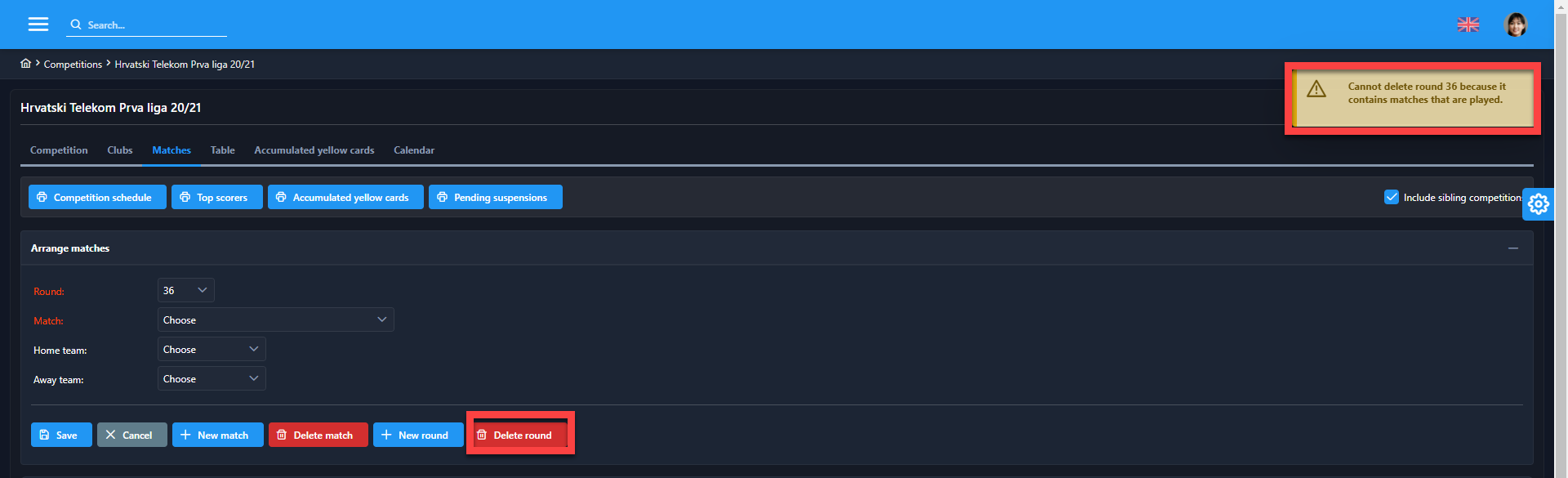⚠ Some users are allowed to delete Matches and Competition Rounds. This functionality is restricted only to Superusers, Competition Administrators and Competition Managers.