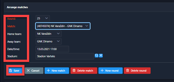You have the ability to rename the Round number to a custom name of your choice. For instance, in competitions, you can assign unique names to matches, such as "Final" for one match and "3rd Place" for another. Alternatively, you can utilize a predefined system to organize the competition and matches, allowing you to customize the names of the Matchdays (Rounds) as you wish.