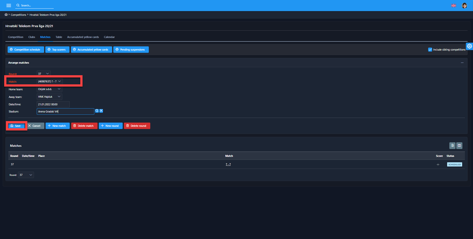 When you change a Match day, the update will appear on the COMET LIVE API. Therefore, we recommend using names that are simple and brief to avoid complications.