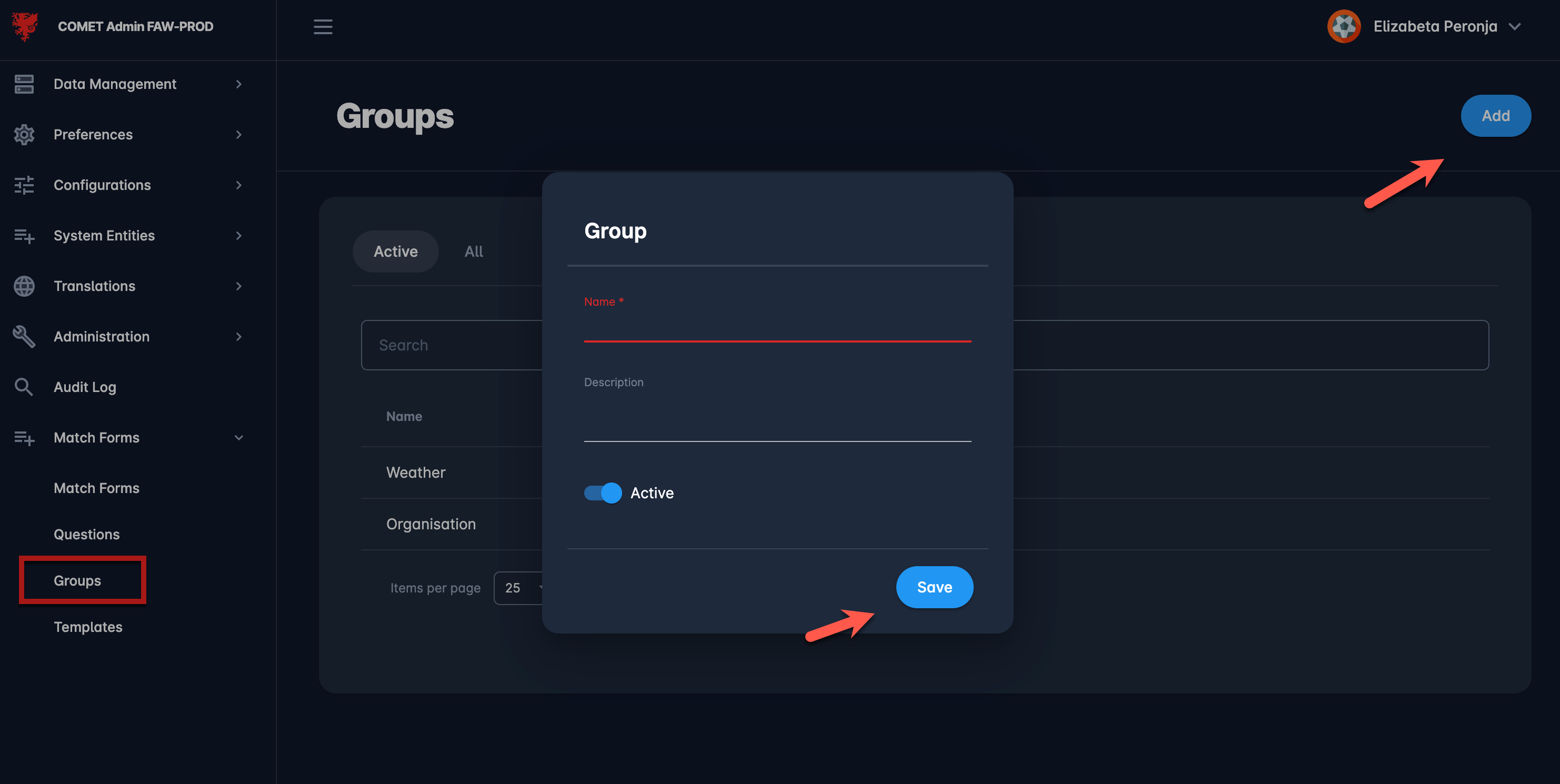 Active /Inactive - *only groups that are set as active can be used on a match form; inactive groups are just displayed on the All tab