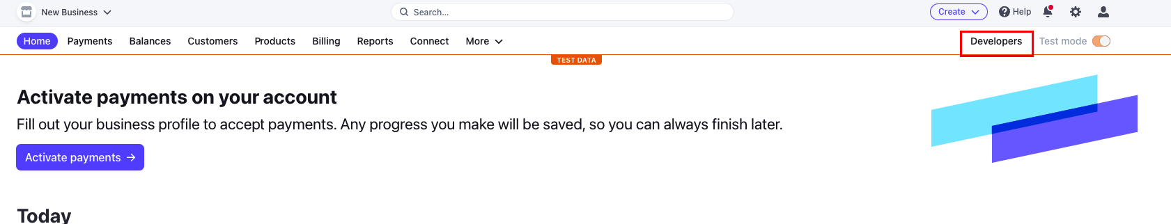 To integrate Stripe with COMET, open your Stripe dashboard → select the Developers menu tab.