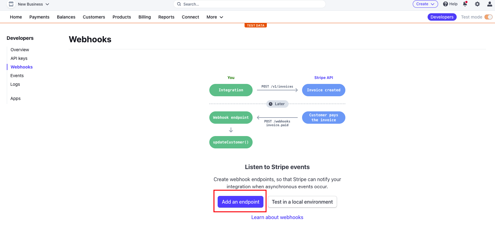 Hit the Add an endpoint button