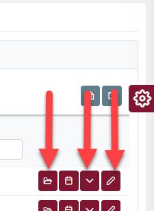 There are also buttons for changing the status of an existing template (arrow button), editing the template (pencil button), or uploading new files to the template (folder button).