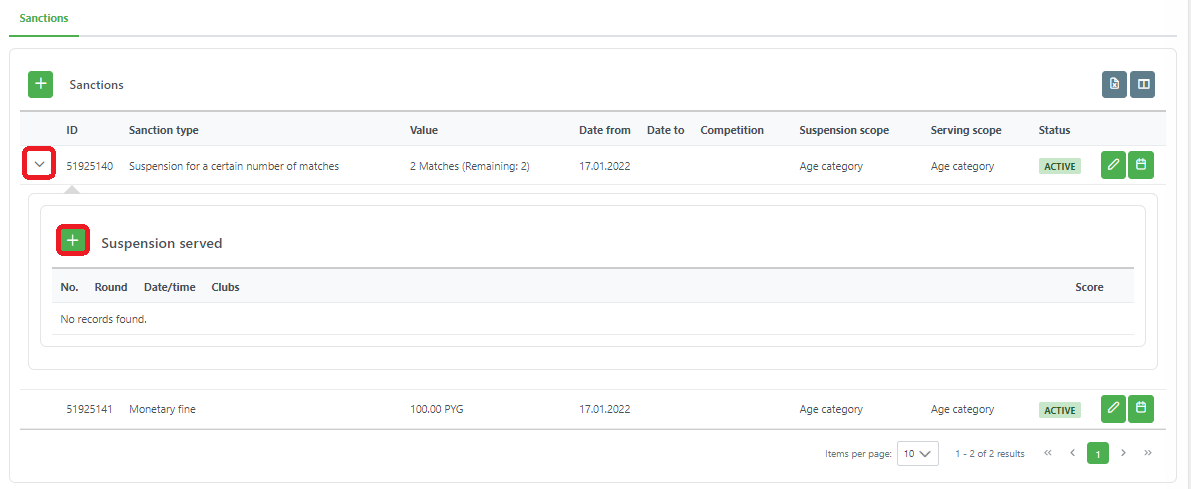 It is also possible to enter matches on which the suspension was served. To do the following:
