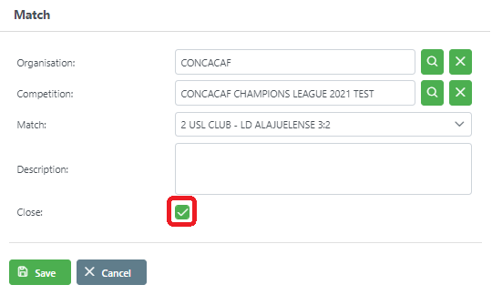 Clicking on the check mark and entering the reason for changing the sanction status closes the sanction. The player can play again once the sanction status is set to closed.