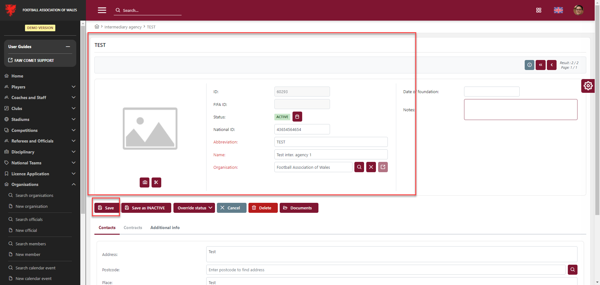 Save the new intermediary agency by clicking 💾 the Save button.