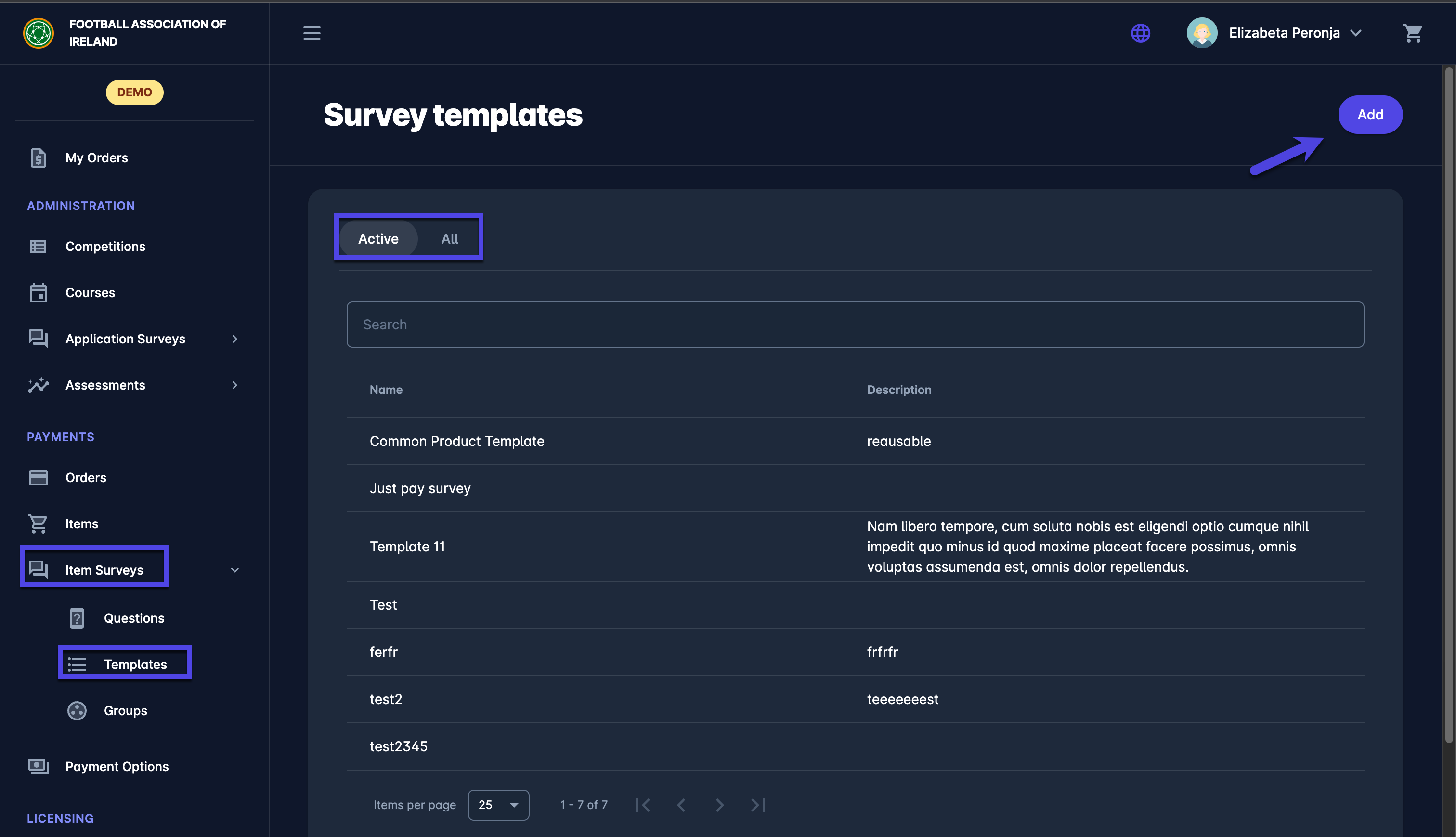 Templates are predefined sets of questions and groups that are stored in the system for the purpose of being reused on different course or competition items. This features optimizes the payment administration processes as there are might be certain item survey forms that are reiterative.