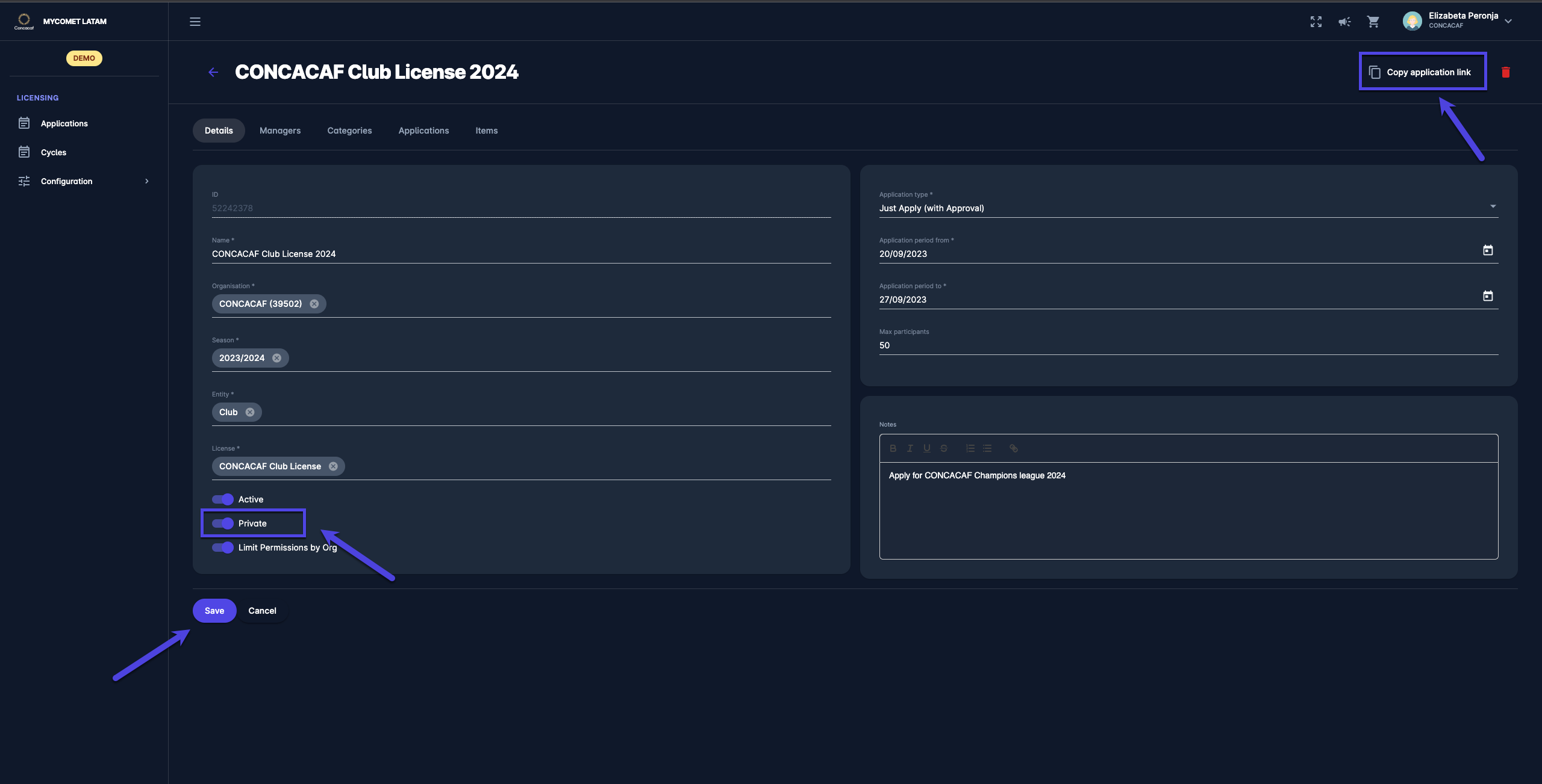 Use the Copy Application Link button to invite the applicant clubs to the private Cycle