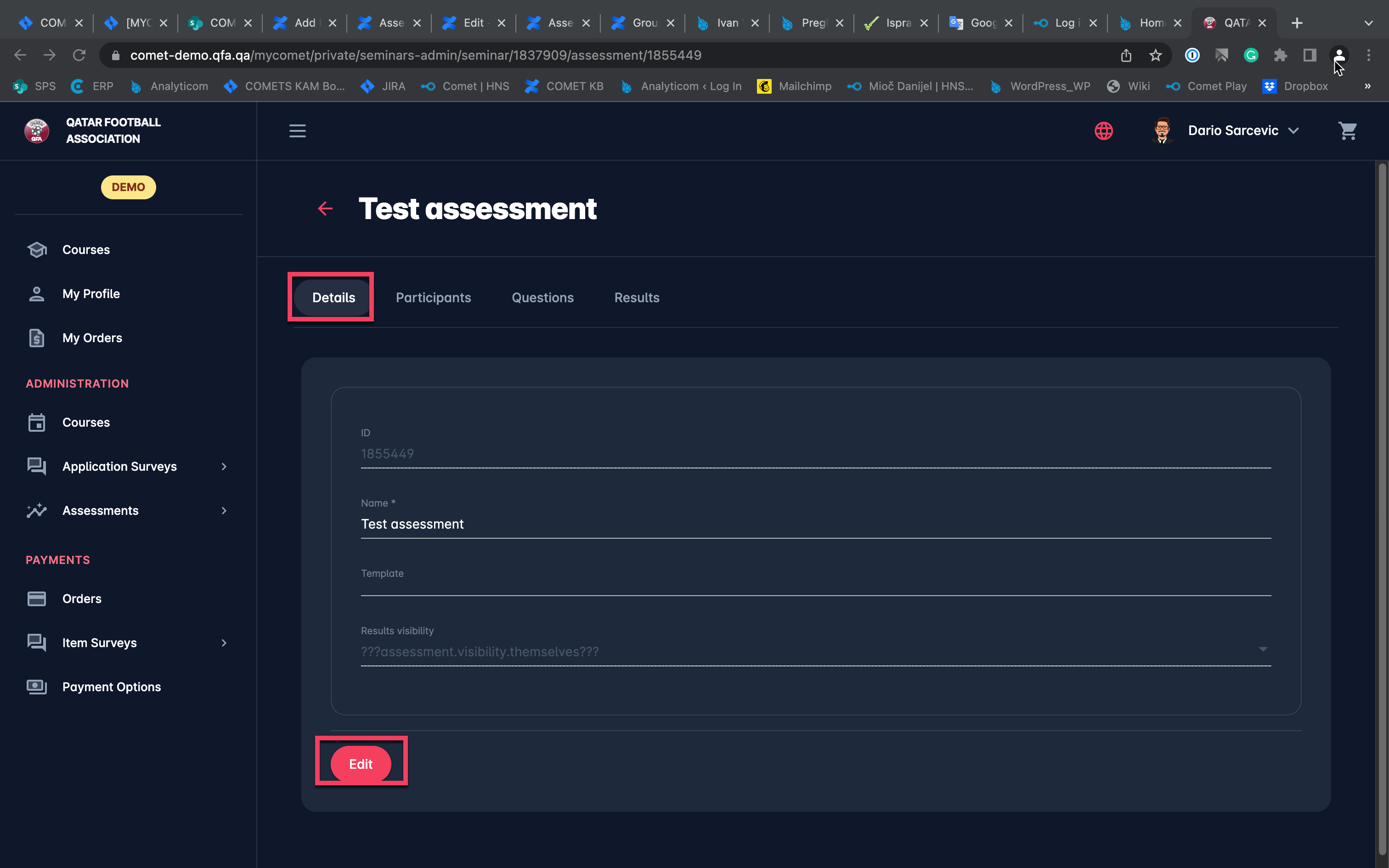 Click on the Assessment from the list that needs to be managed