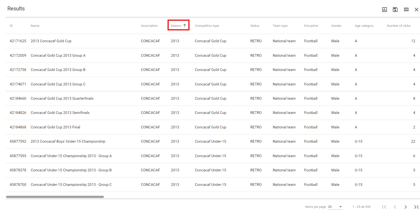 Once the user executes a report with selected parameters, results are presented in a large data table which offers additional options / actions. The following is a list of standard built-in features available on any set of results from Comet Data: