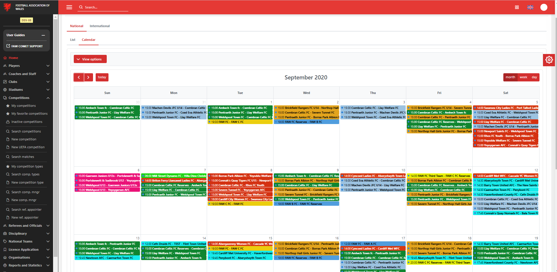 Instead of selecting a specific Competition from the list, you can also click on the Calendar tab, in which case you will see all the matches of your competitions (from My Competitions list) in calendar view, and you will be able to access directly the match by clicking on that specific match in the calendar.